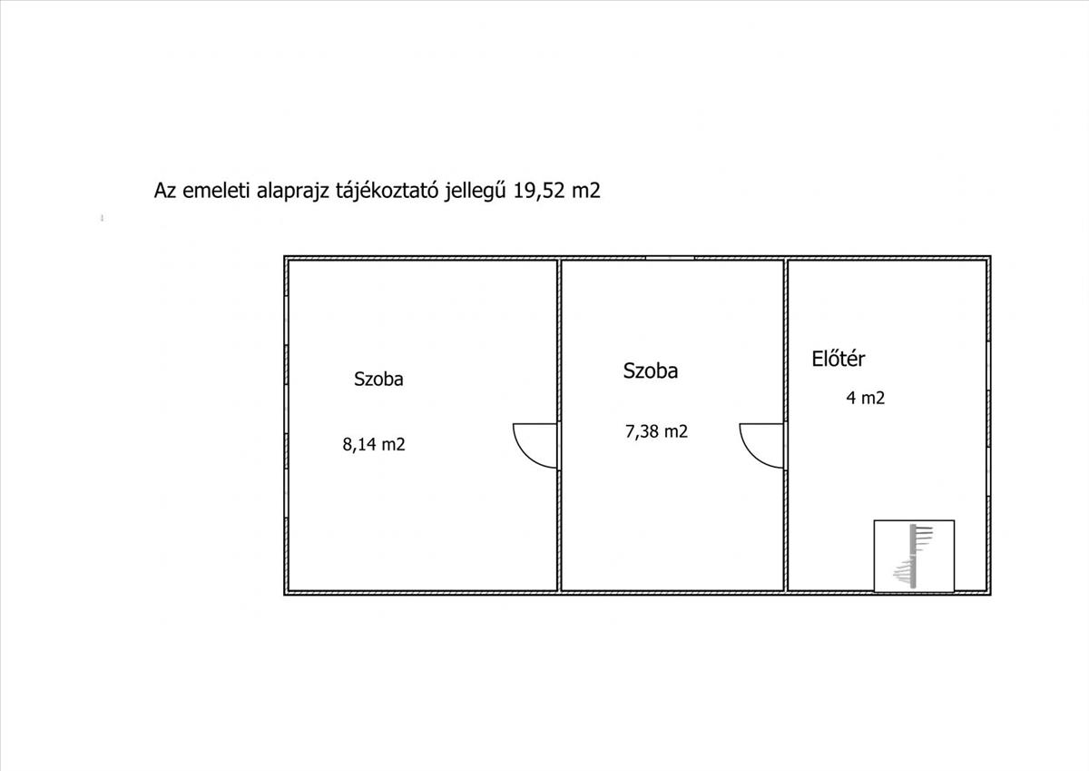 - emelet (19, 52 m2): lépcsőfeljáró, előtér, 2 hálószoba.