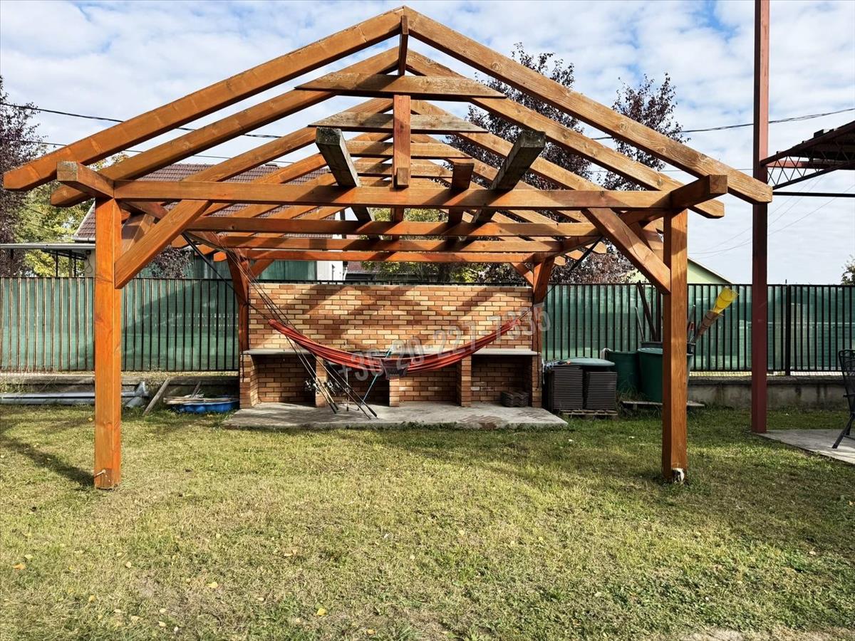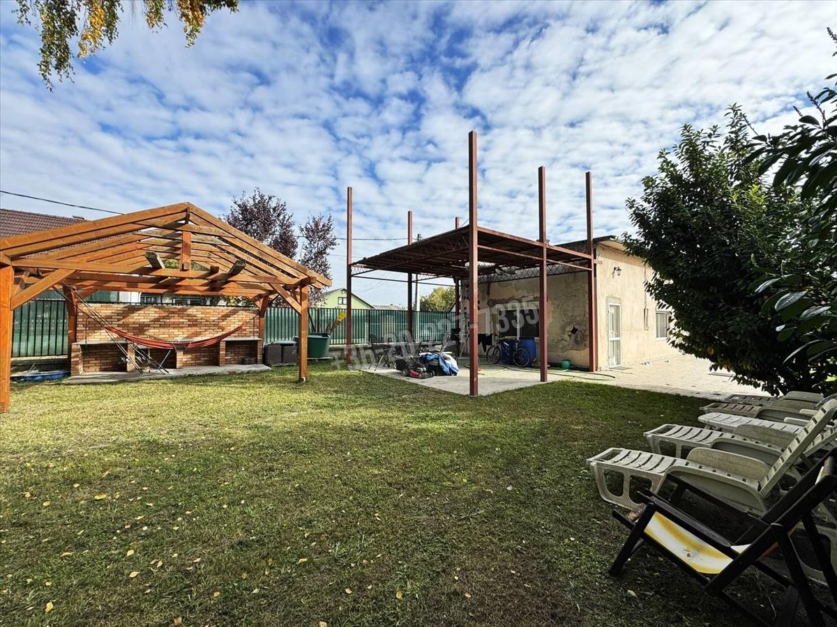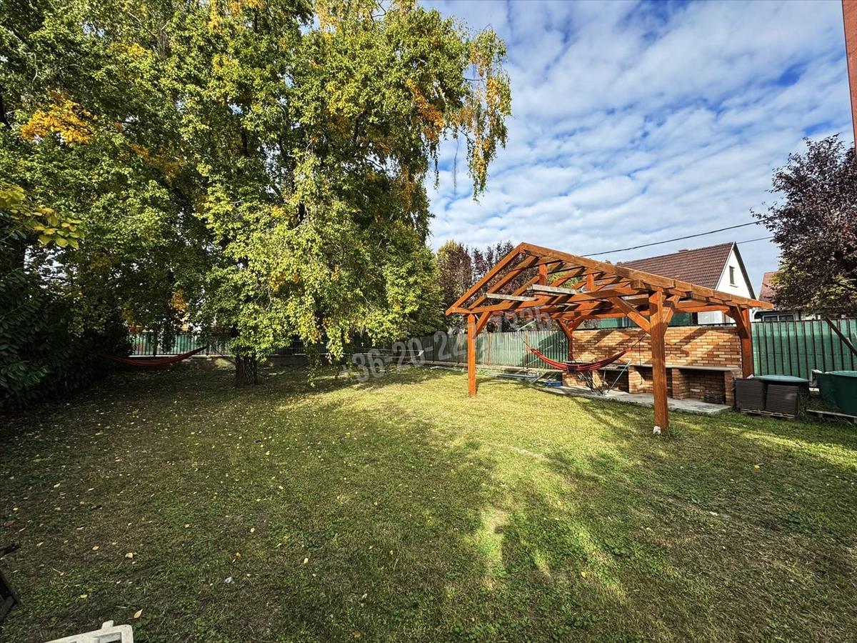 A kertben egy különleges, 5×5 méteres kerti sütögető, látványkonyha is helyet kapott, kéménytéglával kirakott burkolattal és kész faszerkezettel – tökéletes helyszín baráti összejövetelekhez vagy családi pihenéshez.