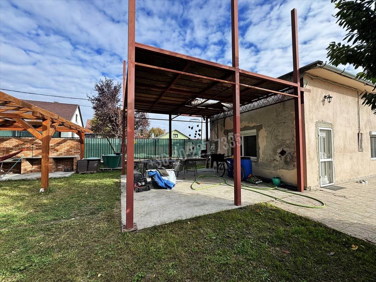 A házhoz kapcsolódik egy 5×5 méteres (25 m²-es) fém szerkezetű épületrész, amely további bővítési lehetőséget kínál – akár fedett terasz, akár plusz szoba is kialakítható itt.