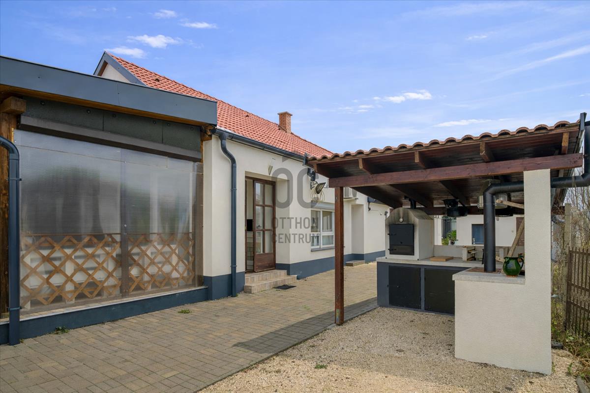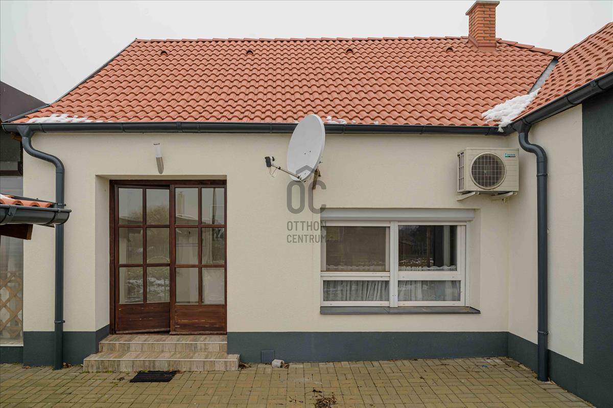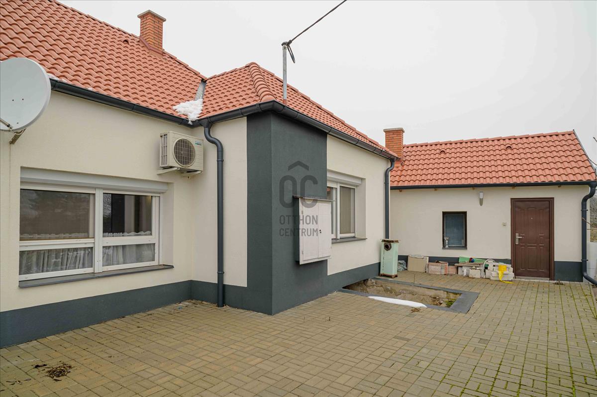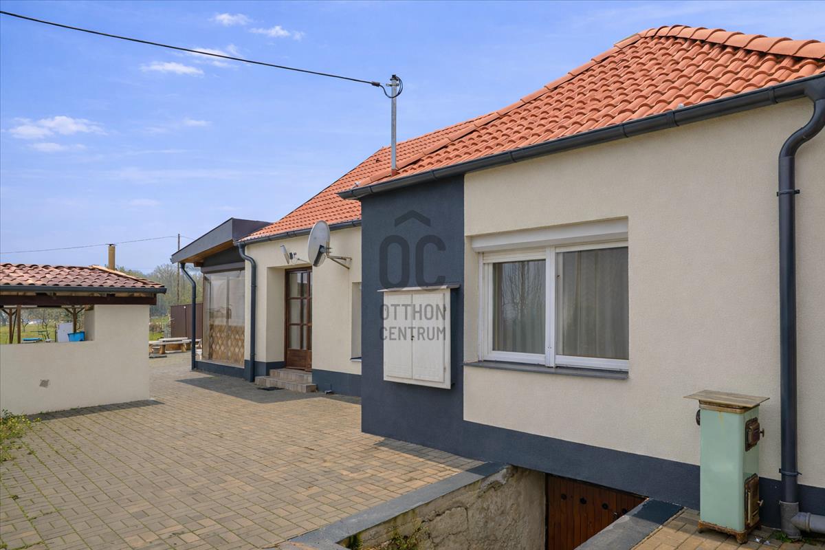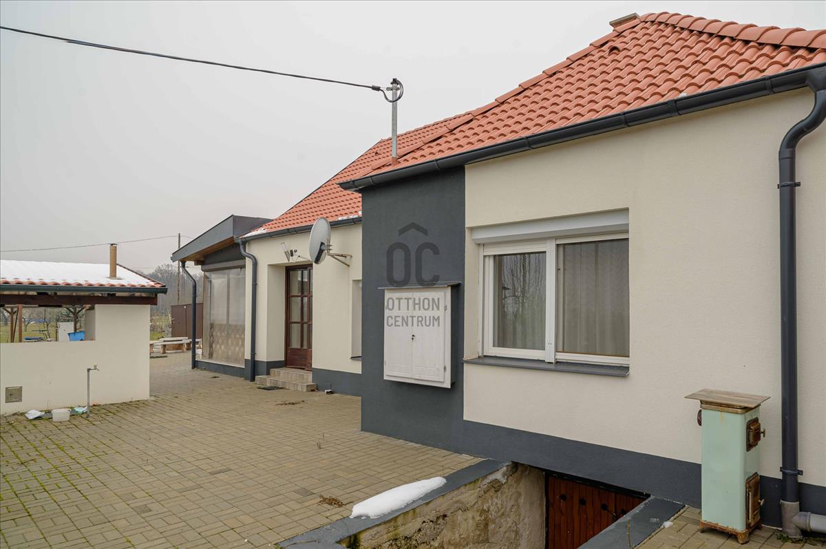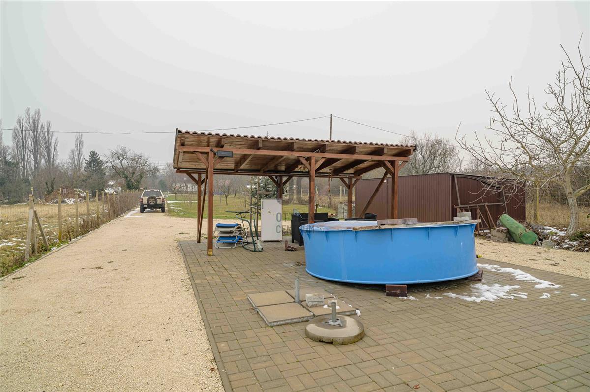 A főépület 73 m² hasznos alapterületű, melyet egy 9, 5 m²-es különálló kisház, egy 20m2-es fedett terasz, egy 19m2-es fedett lakóautó tároló és egy 19m2-es pince egészít ki. a 2373 m²-es, sík telek igazi zöld oázis: gondozott, sok gyümölcsfával, kúttal ellátott, teljesen körbekerített, elektromos kapuval.