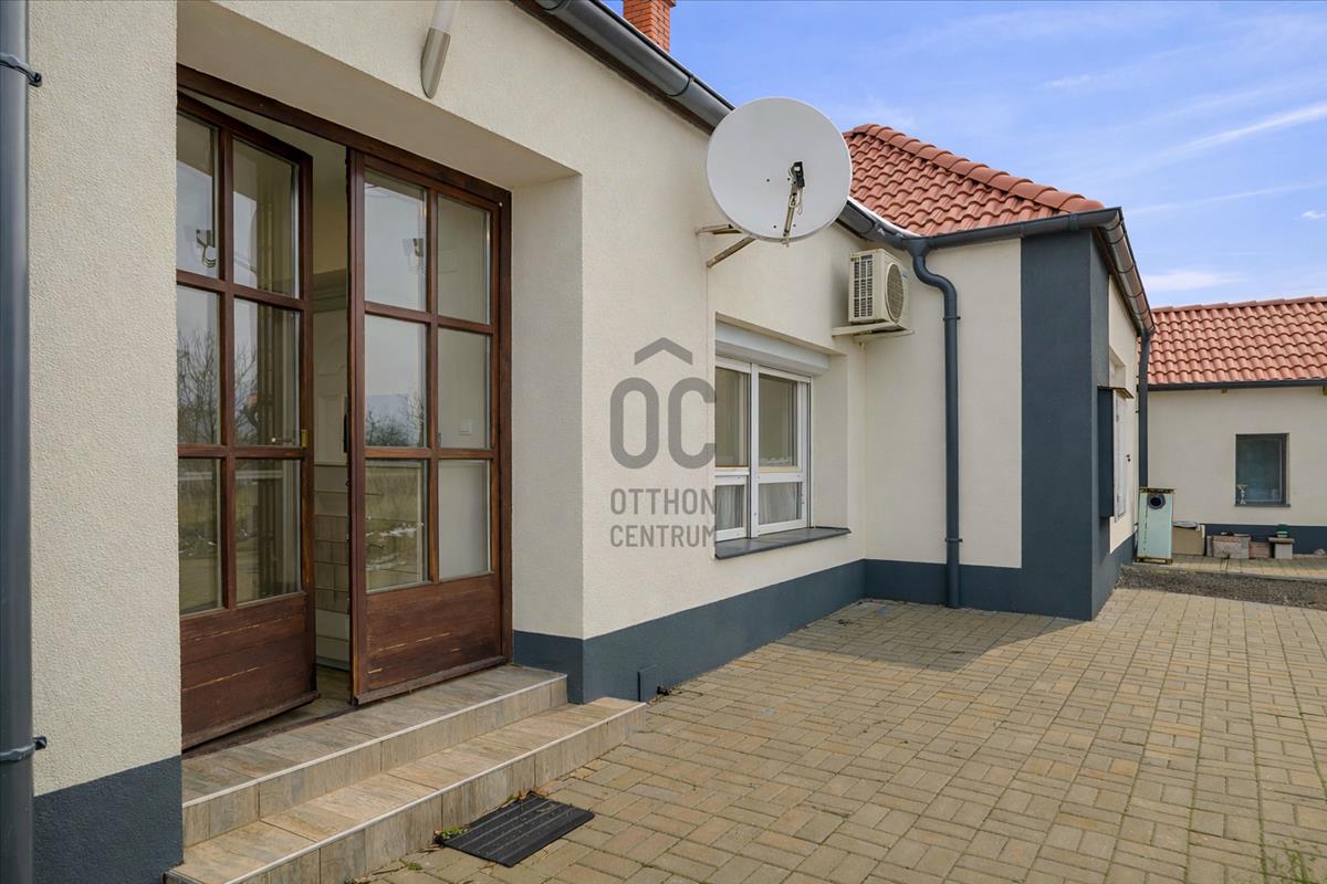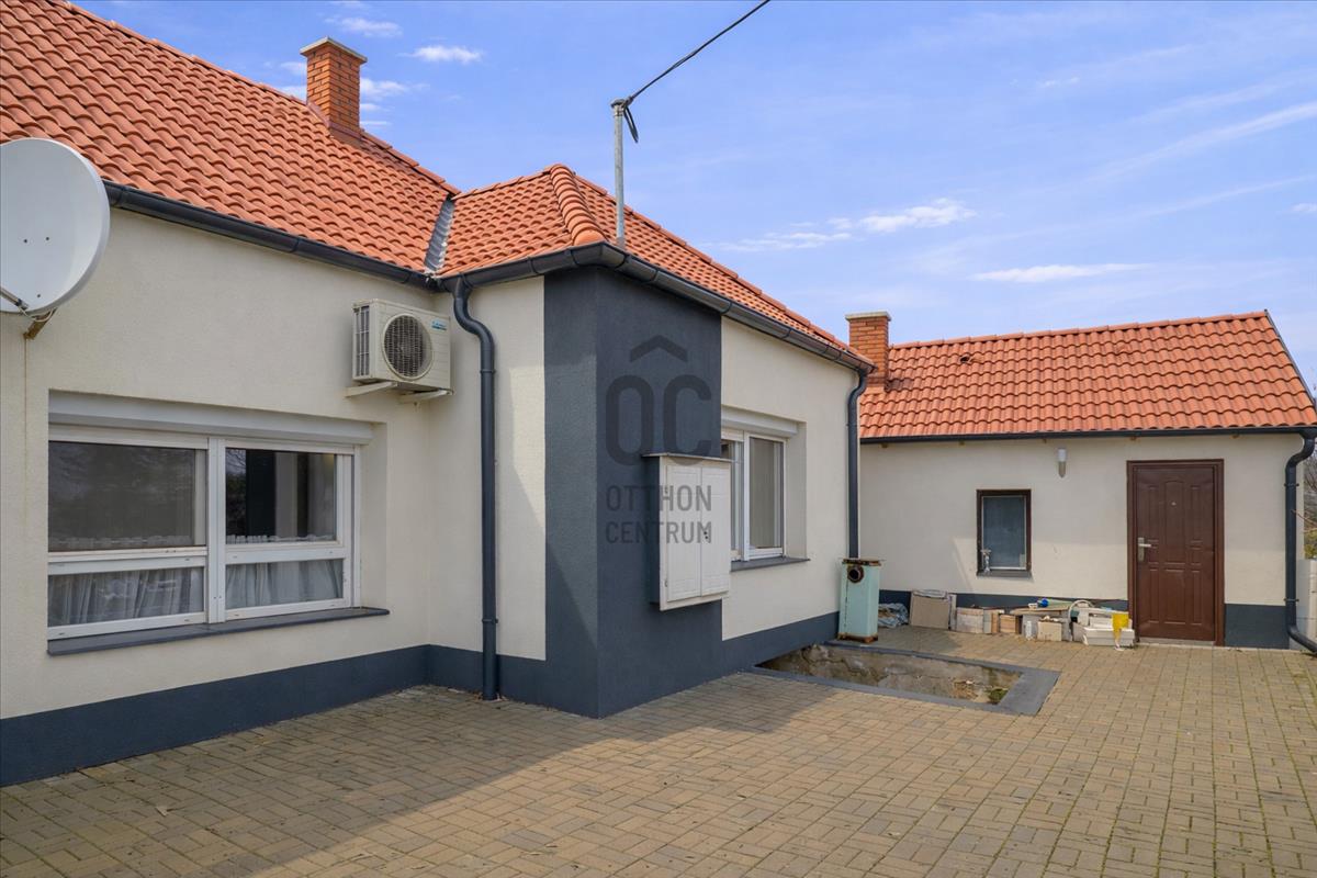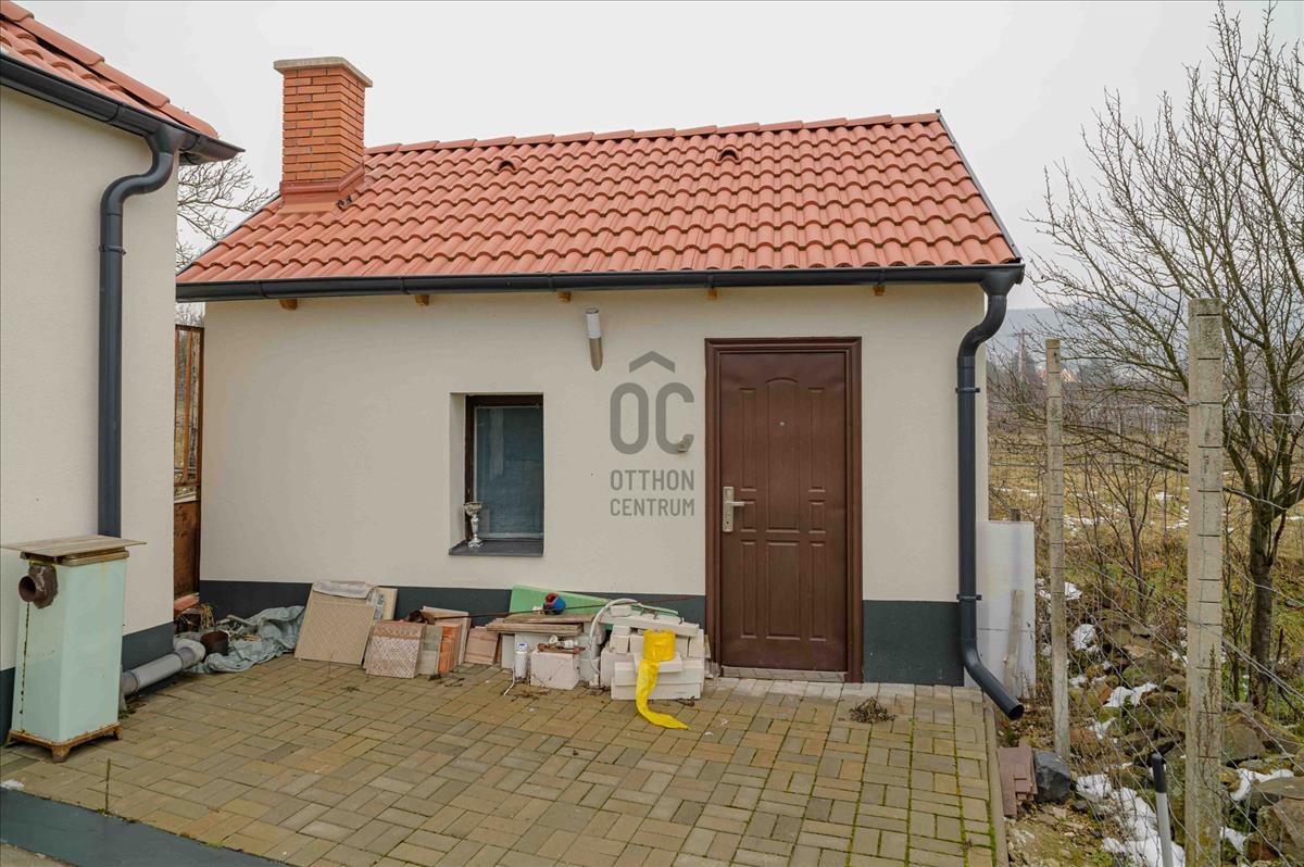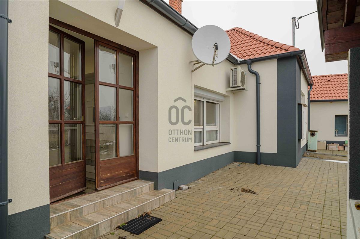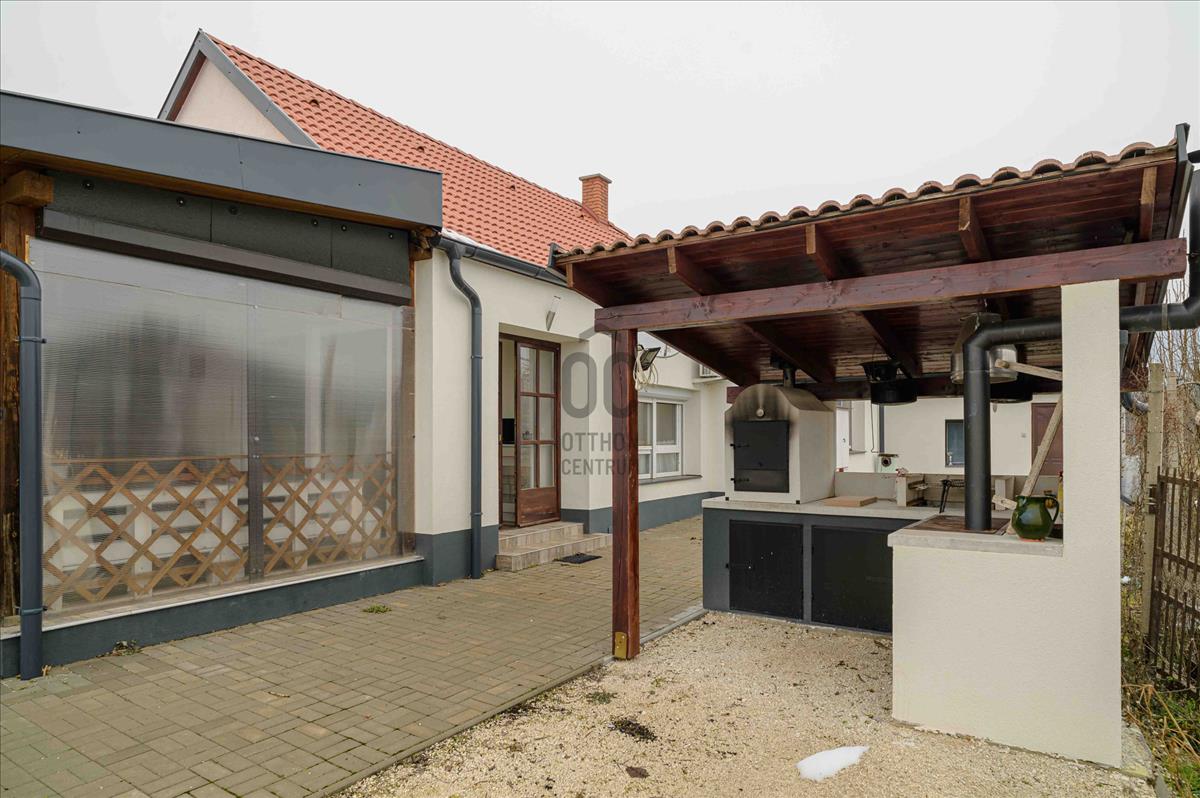 A főépület 73 m² hasznos alapterületű, melyet egy 9, 5 m²-es különálló kisház, egy 20m2-es fedett terasz, egy 19m2-es fedett lakóautó tároló és egy 19m2-es pince egészít ki. a 2373 m²-es, sík telek igazi zöld oázis: gondozott, sok gyümölcsfával, kúttal ellátott, teljesen körbekerített, elektromos kapuval.