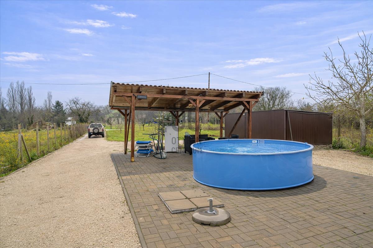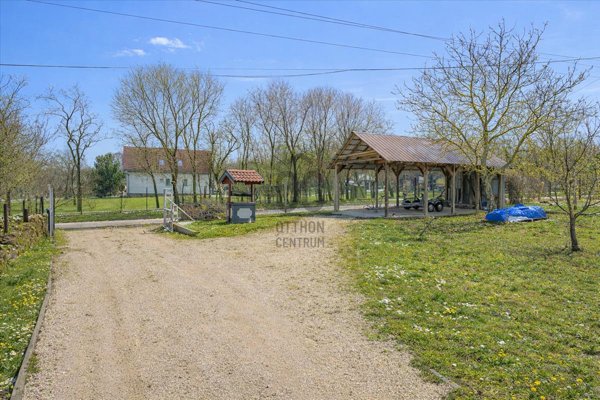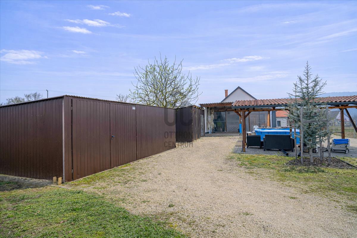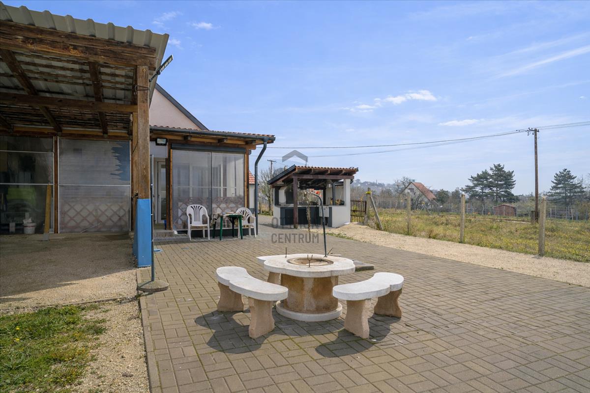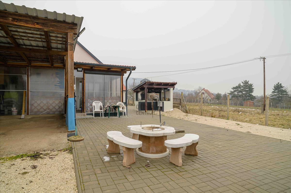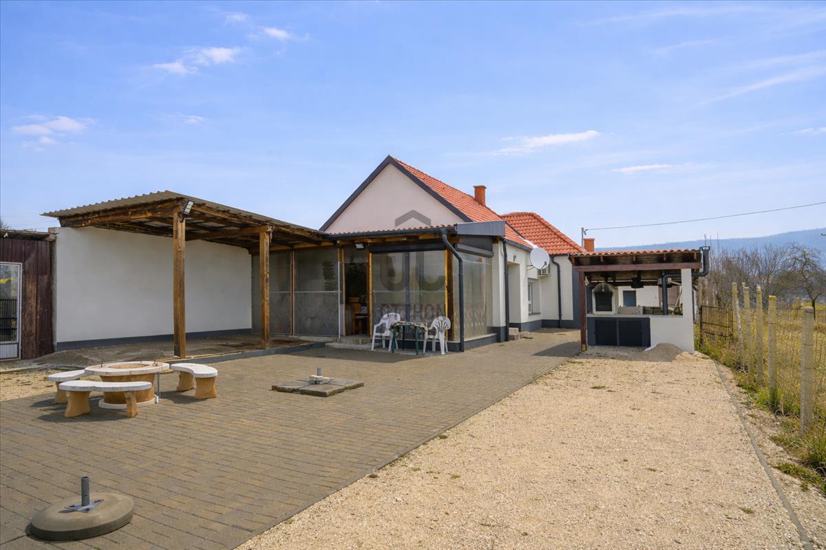 A főépület 73 m² hasznos alapterületű, melyet egy 9, 5 m²-es különálló kisház, egy 20m2-es fedett terasz, egy 19m2-es fedett lakóautó tároló és egy 19m2-es pince egészít ki. a 2373 m²-es, sík telek igazi zöld oázis: gondozott, sok gyümölcsfával, kúttal ellátott, teljesen körbekerített, elektromos kapuval.