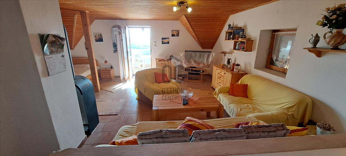 •Felső szint: nagy hálószoba (saját bejárat! ), Tusolós fürdőszoba, hatalmas nappali (plusz háló rész, mely könnyen leválasztható), nagy méretű terasz lenyűgöző táj és balatoni kilátással