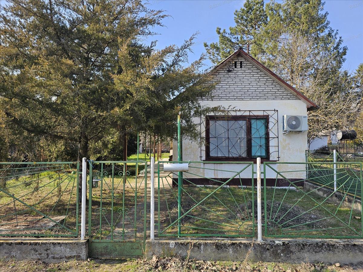 Bács-Kiskun megye Kunfehértó kedvelt üdülőterületén, a strandtól kb. 500 Méterre tégla falazatú nyaraló eladó. Az ingatlanban egy nagyobb és egy kisebb hálószoba, egy előszoba, egy tágas konyha - étkező, valamint egy fürdőszoba+ wc kapott helyet. a ház fűtését jelenleg egy kályha biztosítja, a hűtésről pedig klíma gondoskodik. Villany és víz közművel rendelkezik az ingatlan, a szennyvízelvezetés derítővel megoldott, gázvezeték a telek előtt található. a 39 m2-es épülethez egy 20 m2-es fedett terasz kapcsolódik, mely baráti összejövetelek kiváló helyszínéül szolgál. Ezen kívül a 450 m2-es zöld, fás, virágos udvaron egy fedett kiülő is rendelkezésre áll. Parkolásra fedett autóbeállóban van lehetőség. Az ingatlan felújítandó állapotban van, így lehetősége nyílik arra, hogy saját ízlésére formálja az épületet. a vételár részét képezi két műanyag ablak, melyek már nem kerülnek beépítésre a jelenlegi tulajdonos által az ingatlanba.