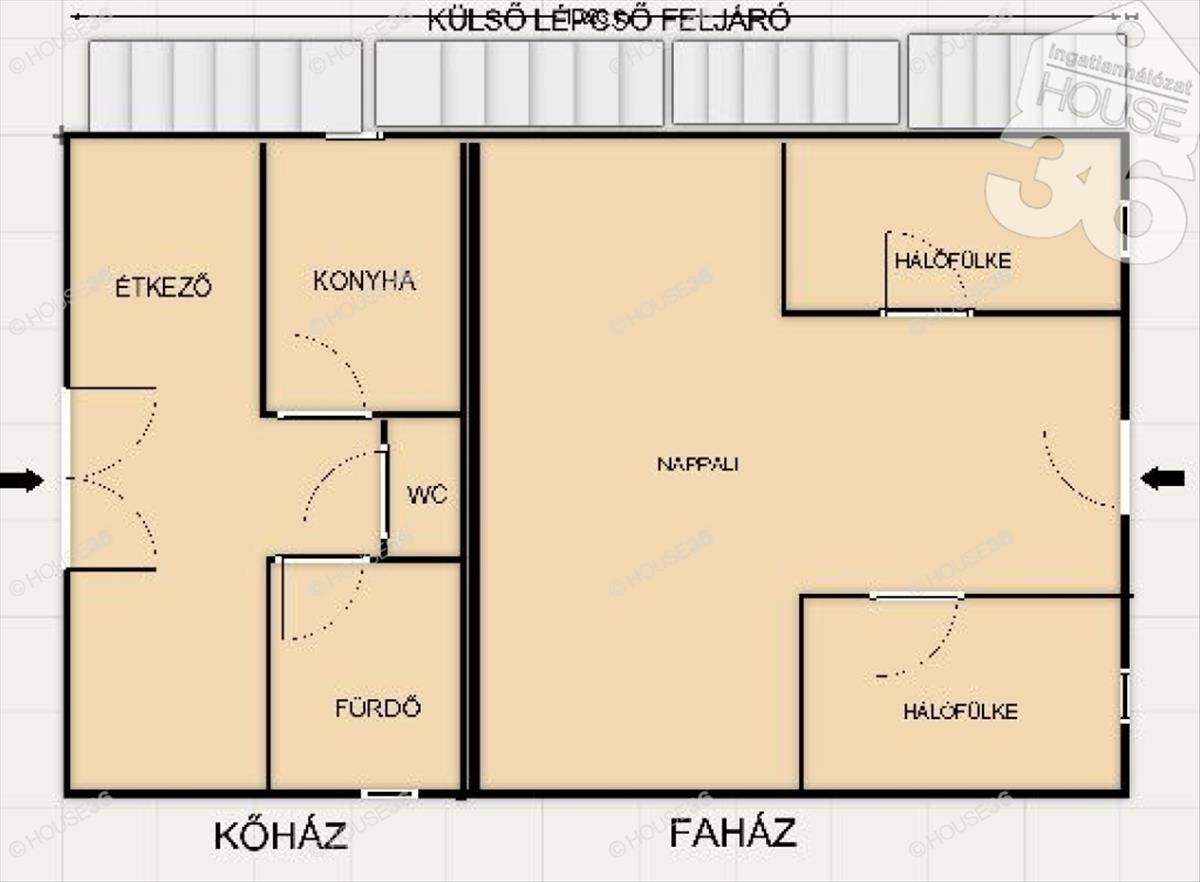- az alsó szinten 16 m2 kőház, benne fürdő, külön wc, konyha és étkező