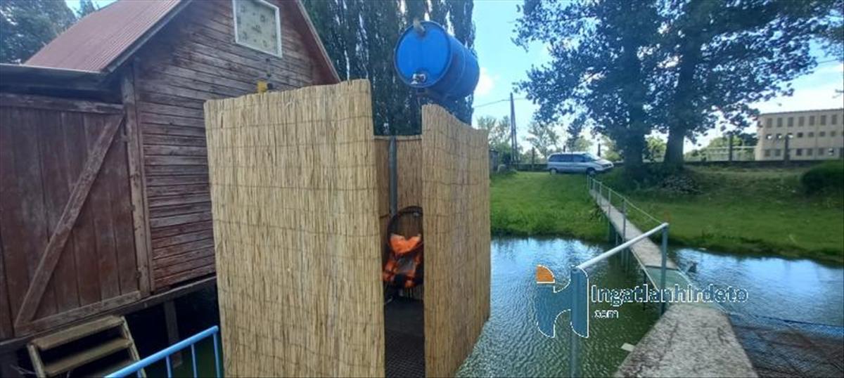 A házhoz tartozik csónak, kis kialakított zuhanyzó, szerszámos ház.