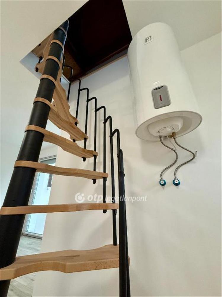 Az emeleti szinten egy tágas, rendkívül kellemes hangulatú szoba található, amelynek belmagassága meghaladja a 2, 5 métert. Itt részben kialakított egy hangulatos hálórész, amely galériás jellegével még inkább otthonosabbá teszi a szobát. a felső szint külön külső bejárattal is rendelkezik - akár külön lakrésznek is tökéletes.