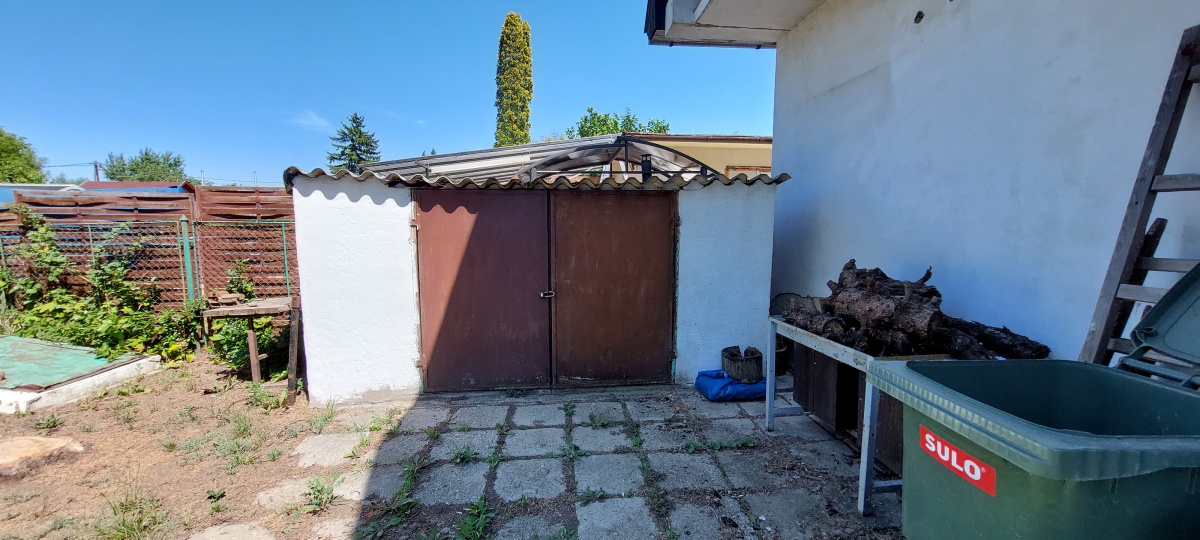A ház mellett van egy szerszámos kamra téglából építve (kb. 4 m2), mellette egy földbe ásott tégla-vasbeton borospince (kb. 2 m2). Kocsibeálló a telken belül egy autónak van, további három autó parkolhat a ház előtt.
