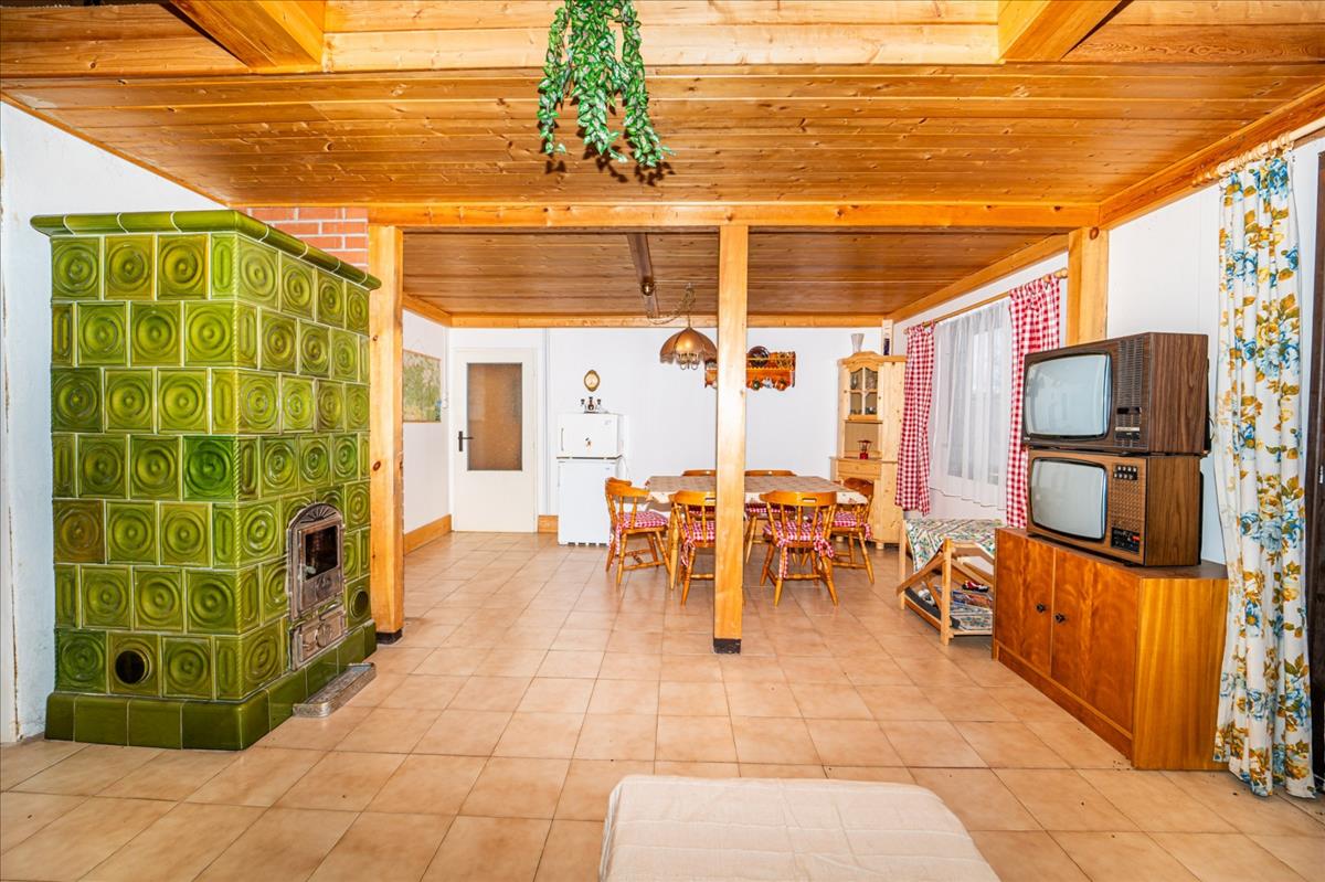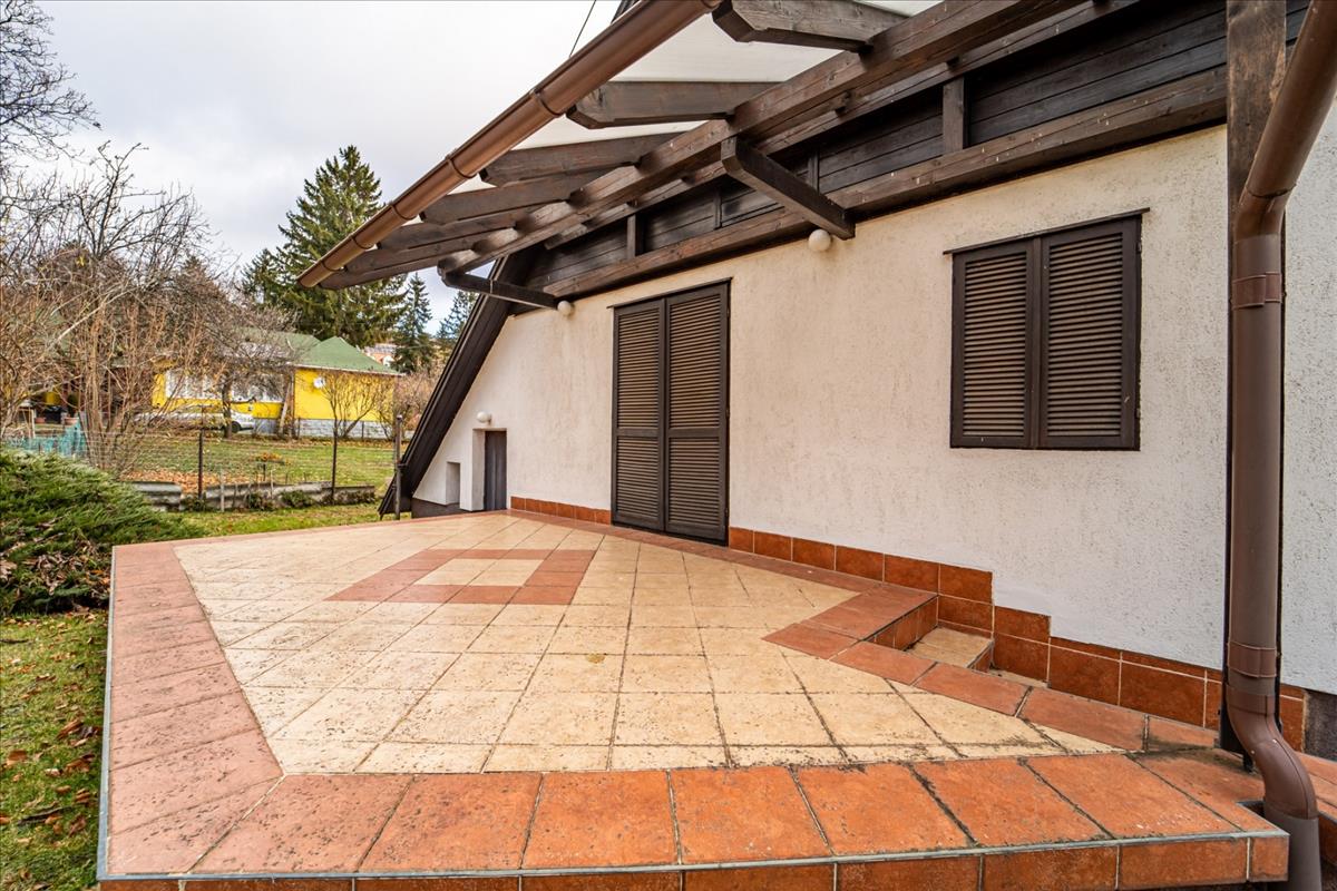 Mátraszentimrén, az ország legmagasabban fekvő lakott településén kínálok eladásra egy szinte teljesen sík, 1451 m2-es telken lévő (tulajdoni lapon kivett hétvégi ház, udvar megjelölésű), nappali + 3 hálós, 80-as években épült téliesített, eredetileg szlovák szendvics faházat az Arany János utcában. a lakható alapterület 107 m2, emellett egy 30 m2-es garázs és egy 20 m2-es, fedett terasz is tartozik hozzá, a telekre külön is be lehet autókkal állni.A kádas fürdőszobában és külön is található wc. Az épület fűtéséről cserépkályha, valamint elektromos padlófűtés gondoskodik, külsőleg 5 centi polisztirollal szigetelt. Nyílászáróit sötétíteni és biztonságosan bezárni hosszabb távra fa zsalugáterekkel lehetséges, az emeleten több már hőszigeteltre cserélve.