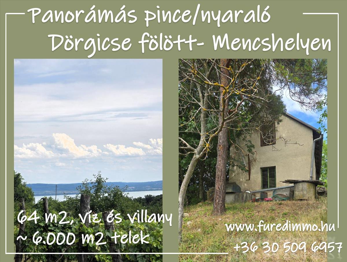 Dörgicse és Mencshely között, a csodás halom-hegyen kínálom ezt a kevés lemondással járó, külterületi pince-présház-nyaralót.