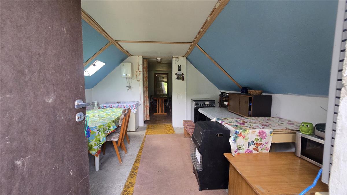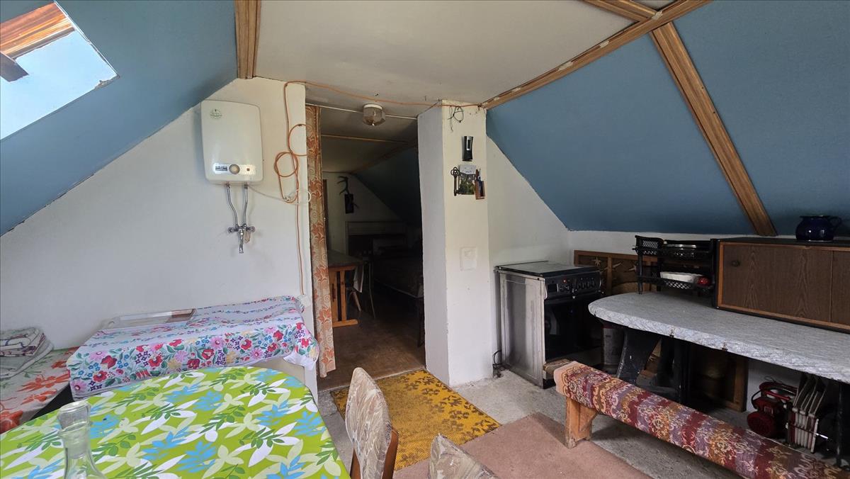 FELSŐ szint: kifejezetten lakó-pihenő rész került kialakításra a ~32 m2-es tetőtér beépítésével. a mindössze két egymásból nyíló helyiségben háló és nappali-konyha van jelenleg, külön bejárattal.
