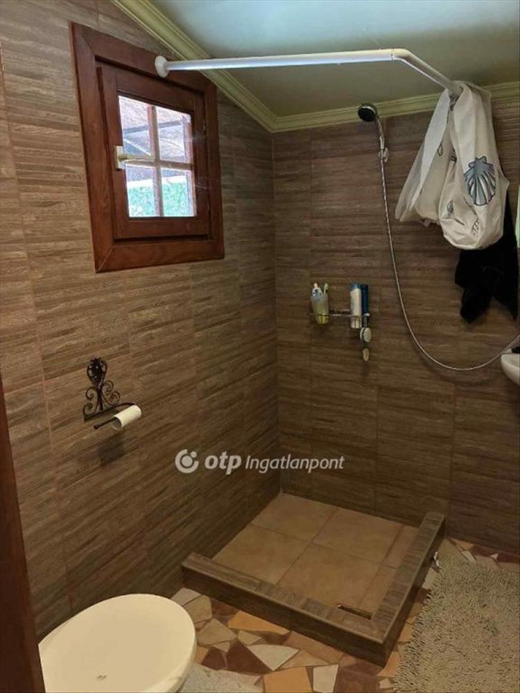 A nyaralóban megtalálható külön egy fürdőszoba kialakítva, tusolóval és mosdóval együtt.