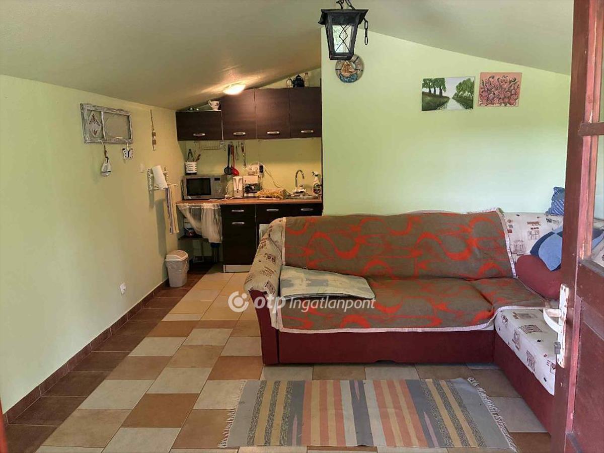 A nyaraló közvetlen a víz mellett található, 975 m2 telken fekszik, alapterülete 28 m2, melybe beletartozik egy kisebb tároló, és ezen felül van egy 20 m2-es nagyon jól kialakított szép terasza! Az épület 2010-2013 között épült, ahogy belépünk az épületbe egyből egy kellemes nappali fogad minket, mely egyben van egy kis kényelmes konyhával.