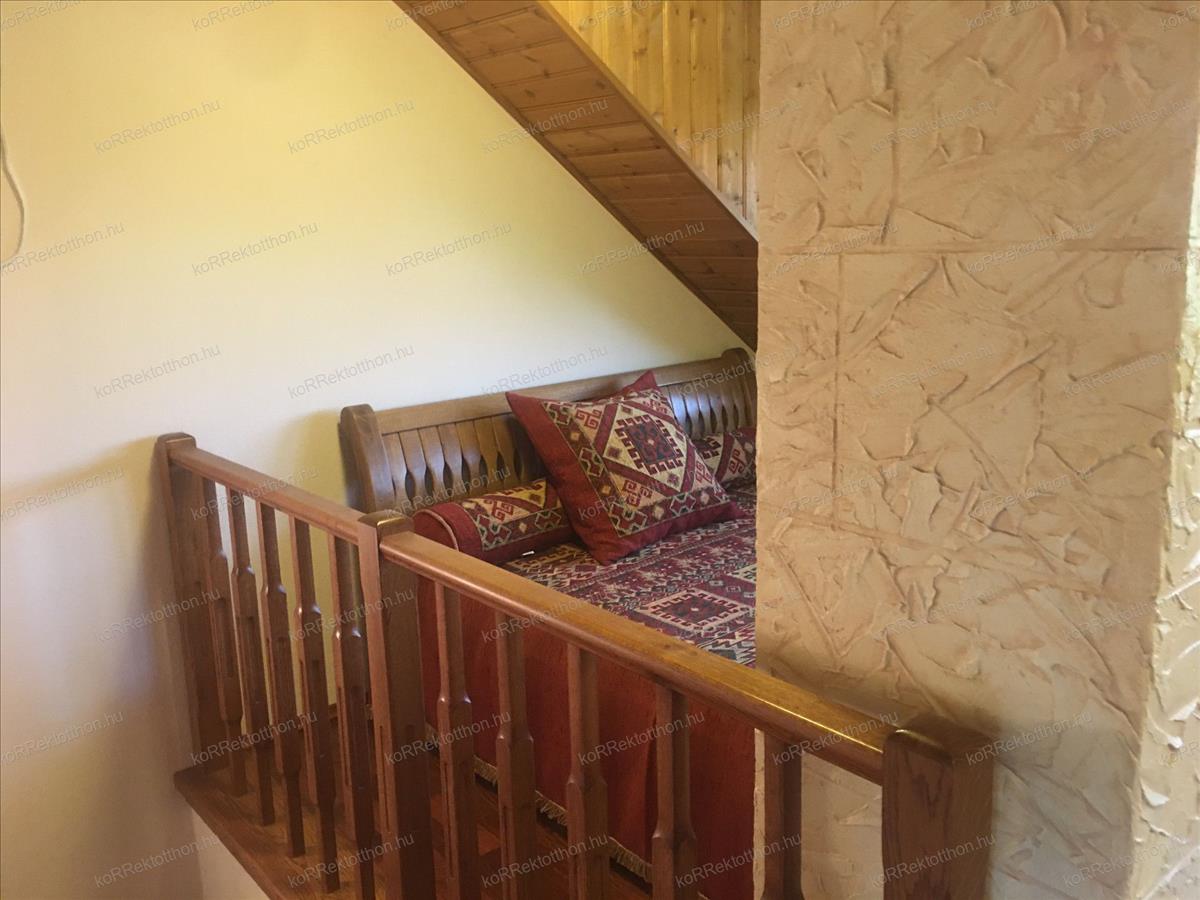 Az emeleten 2 szoba foglal helyet. Fa gerendás kialakítása miatt emelve a felső szintet.