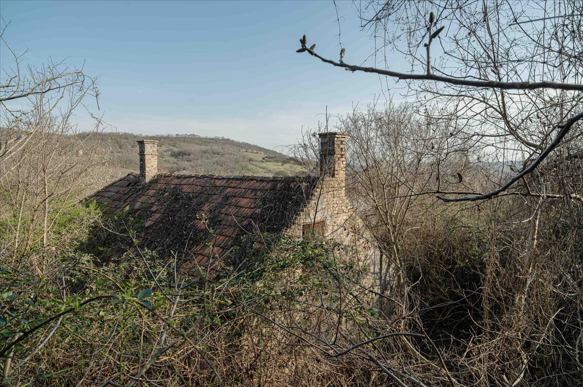 A több mint 70 nm -es alapterületű ingatlan tulajdoni lap szerint gazdasági épület, melyhez közel 3 hektár terület tartozik két helyrajzi szám alatt. a valamikor művelt területet, mely 29650 nm gondozás hiányában visszavette a természet, a fennm aradt épületet így most ténylegesen az erdő öleli körbe. a meglévő épület alapterülete kb 70 nm , mely alatt egy boltíves pince is húzódik. a földhivatali térképen feltüntetett épület a meglévő paraméterek szerint helyreállítható.