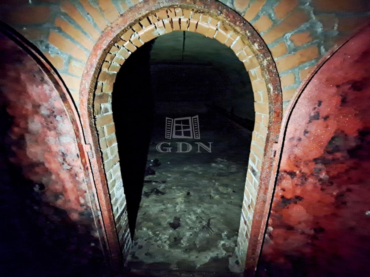 -a földszinten amerikai konyha-nappali, melynek közepén lépcsős lejárat a csodálatosan kifaragott, villanyvezetékelt 112m2-es pincébe