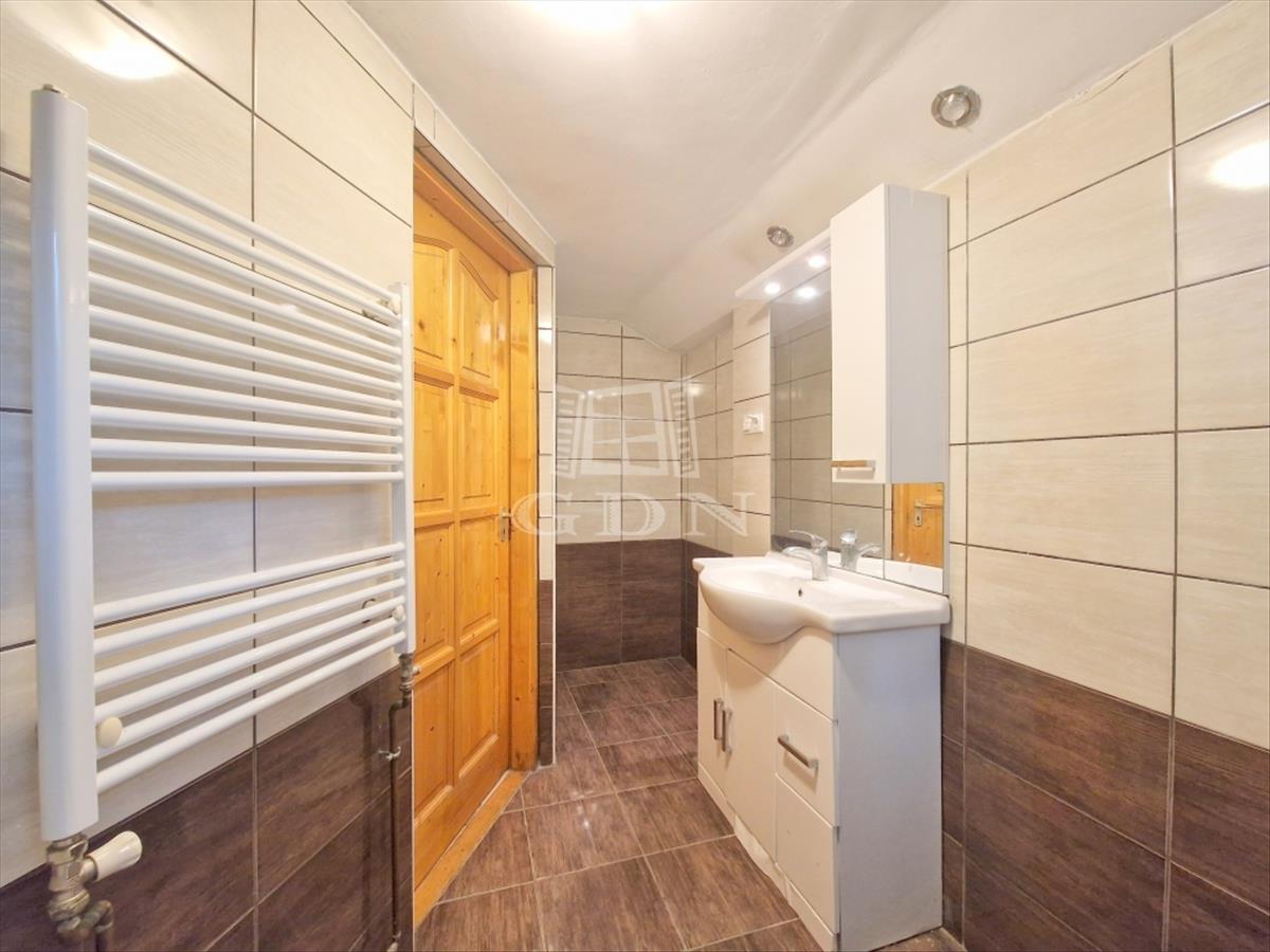 Az alsó szinten találjuk a nappalit, a konyhát és a jelenleg tárolásra használt spejz részt, valamint egy fürdőkáddal és toalettel ellátott fürdőszobát. Amennyiben új tulajdonosa még több helyiséget szeretne kialakítani, a lehetőség adott, hiszen a tetőtér (padlás) is beépíthető!