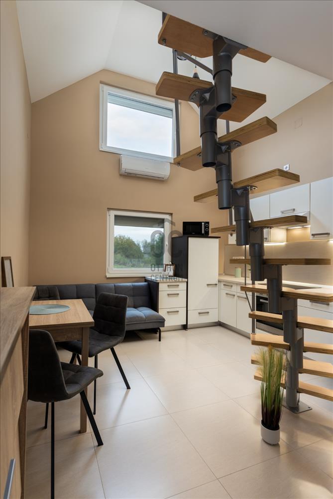 - 9 m2 alapterületű galéria, mely jelenleg hálószobának van berendezve,