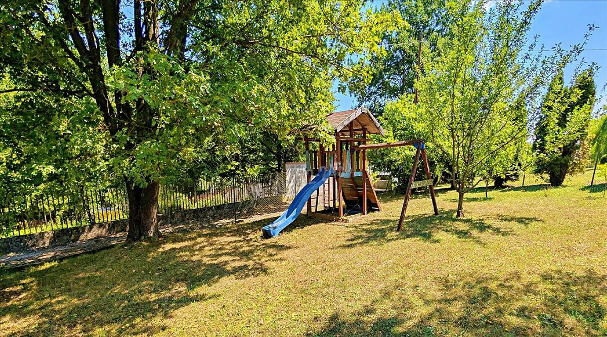 A kertben tűzrakóhely, valamint hintával és csúszdával felszerelt játszótér is helyet kapott – a kicsik és a nagyok örömére egyaránt.