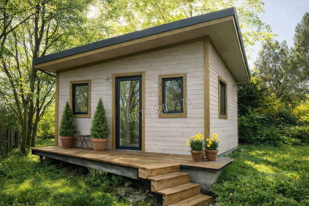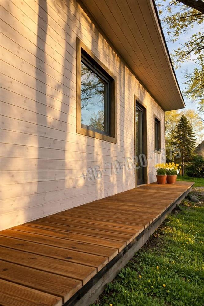 Beton alapra épült, igényesen kivitelezett, könnyűszerkezetes faház