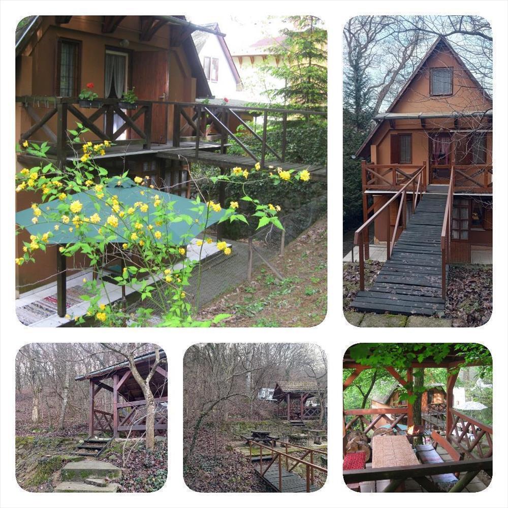 Heves vármegye, Noszvaj-Síkfőkút 110 m2-es, állandó lakhatásra is alkalmas, duplakomfortos hétvégi ház eladó!Az ingatlan Egertől 10 km-re, Bogácstól 6 km-re, a település üdülő övezetében erdős-fás területen, a síkfőkúti tavak közelében található, 567 m2-es tartozik hozzá. Az udvar alsó, térkövezett szakasza a kényelmes parkolást biztosítja, míg a felső, enyhén lejtős, erdőbe nyúló rész hangulatos kerti kiülőkkel, egy rönkasztallal és lócákkal felszerelt filagóriával, és egy kőből épített nyársalóval kínál ideális helyszínt baráti és családi összejövetelekhez, valamint a szabadidő kellemes eltöltéséhez. a környezettel harmonizáló, négyszintes lakóház 1992-ben, különleges építészeti megoldással épült: az ytong falazatú első két szintre egy komplett, kétszintes faház került ráépítésre. Az épület a közelmúltban Nikecelles hőszigetelést, új vakolatot kapott. a kitűnő állapotú tetőszerkezetet kisméretű pala borítja; a tetőteret kőzetgyapottal szigetelték. a ház belső kialakítása biztosítja a szintek közötti zavartalan átjárást, ugyanakkor az alsó három szint külön bejárattal is rendelkezik, így a szintek használata elkülöníthető. a pinceszint jelenleg nyári konyhaként funkcionál, külön tusolós fürdőszobával és WC-vel kiegészítve. a belső terek meleg, barátságos atmoszféráját a fa szerkezeti elemek - például a látszógerendás mennyezet, a térelválasztó rácsok, a lépcső stb. - Határozzák meg. a földszinten a könnyűszerkezetes szélfogón át érkezünk a konyha-étkezőbe, amelyet praktikus, beépített italrekesz választ el. Ugyanitt található egy hangulatos, teraszra nyíló társalgó, valamint egy fürdőszoba is. Az első emeleten egy tágas, 36 m2-es nappali vár ránk, dupla terasszal és mosdóval ellátva, ahonnan csodálatos kilátás nyílik a kertre, az erdőre és a környező hegyekre. Az erdei háznak mesés hatást kölcsönöz a hátsó teraszról a kertbe átívelő bájos híd. a tetőtérben a galériáról két hálószoba nyílik, melyek meghitt légkörükkel pihenésre hívnak. a lakóhelységeket természetes, fából készült hajópadló burkolja, míg a konyhába és a fürdőszobákba járólap került. a nyílászárók fából készültek, duplarétegű, hőszigetelt üveggel, minden ablak elé zsalugátert szereltek.