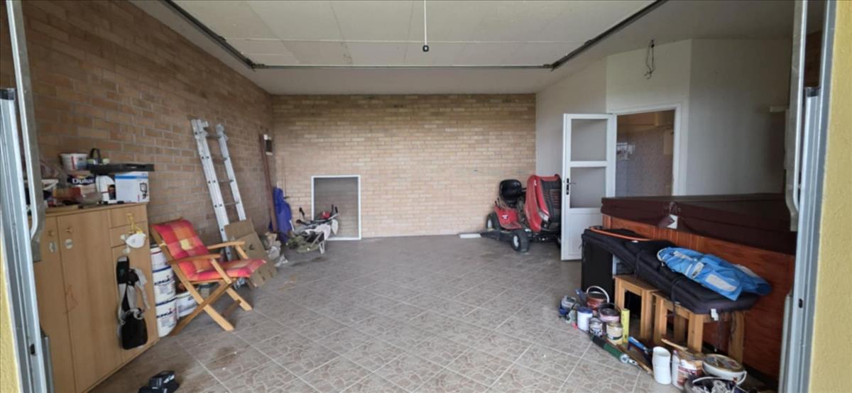 Az alsó, 40 m²-es szinten garázs, fürdőszoba és jakuzzi található, valamint fedett teraszkapcsolat biztosítja a kényelmet. Az udvaron több gépkocsi parkolása is megoldott.