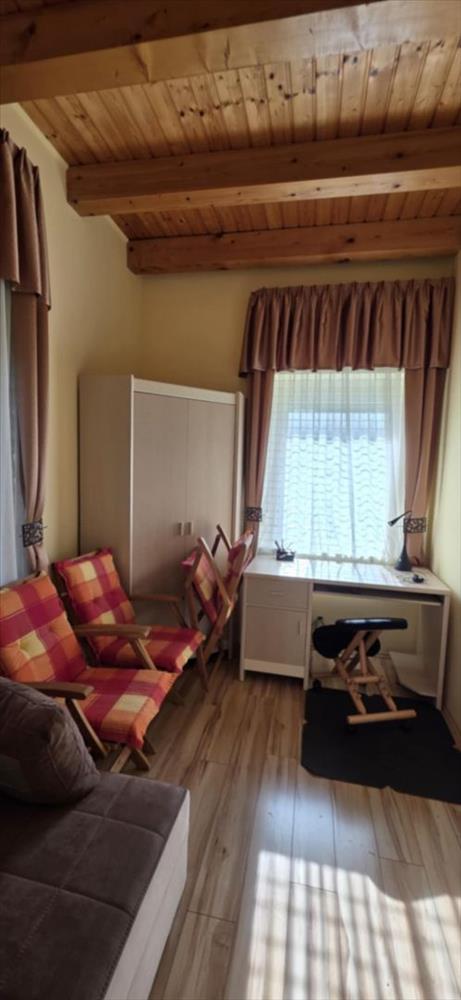 A felső, 60 m²-es lakószinten nappali–étkező–konyha, két hálószoba és fürdőszoba került kialakításra. a teljesen gépesített konyha (beépített mosogatógép, mikró, fagyasztós hűtőszekrény, kerámia főzőlap) azonnali használatra kész. a nappaliból nyíló, közel 20 m²-es teraszról páratlan panoráma tárul elénk a környező hegyvidékre, amely jó időben szervesen összekapcsolható a lakótérrel.