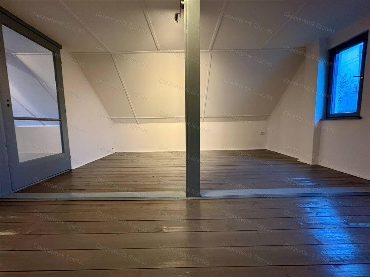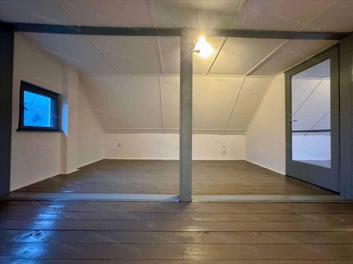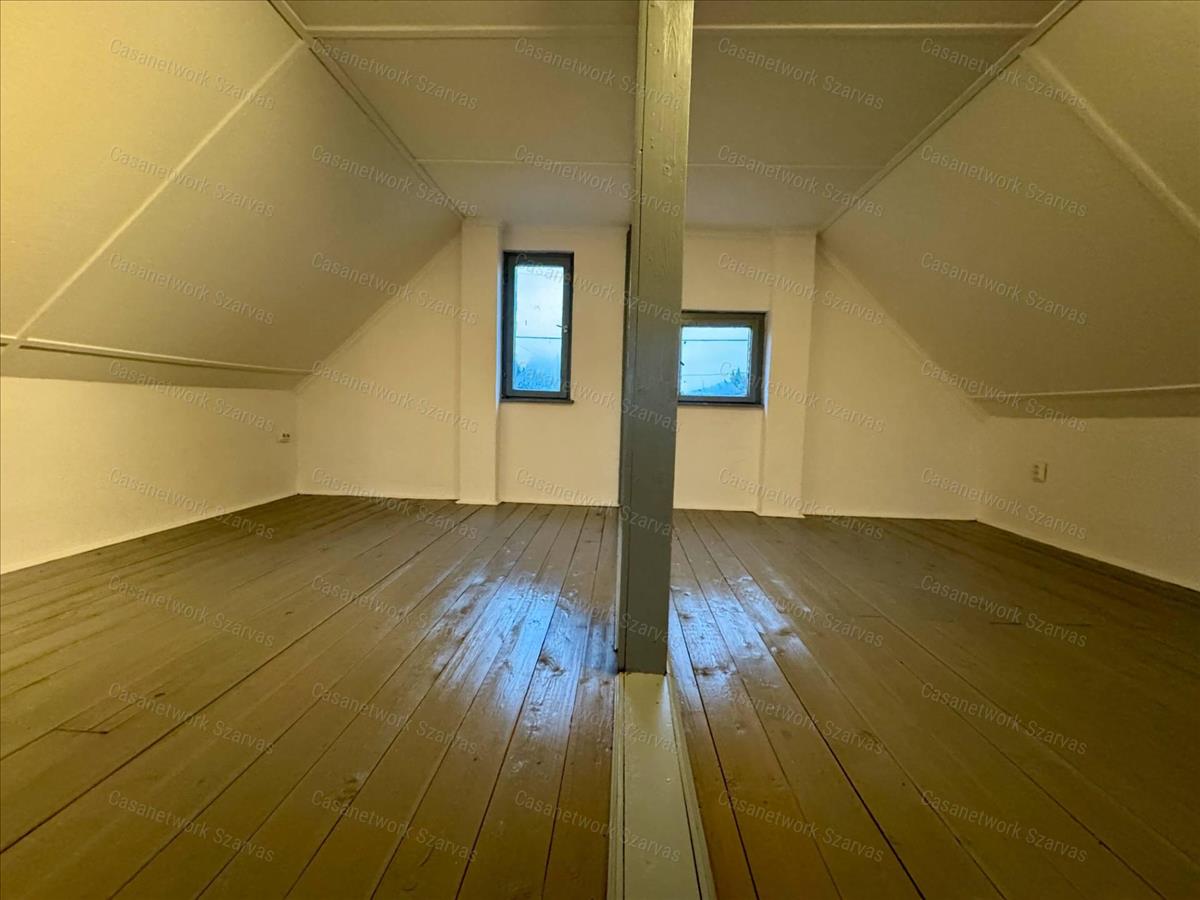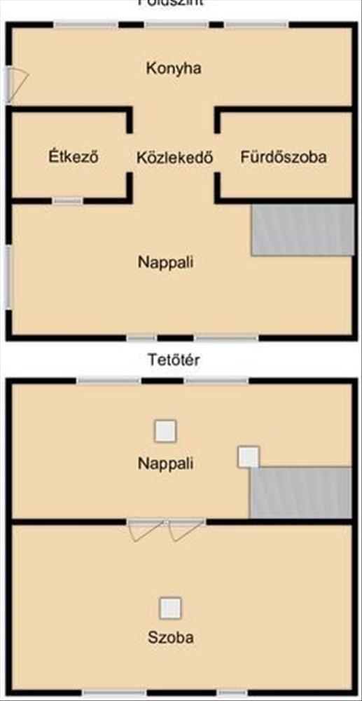 - a földszinten konyha, közlekedő, fürdőszoba, étkező, nappali; beépített tetőterén szoba, nappali lett kialakítva, a pincében egy egyterű helyiség található.