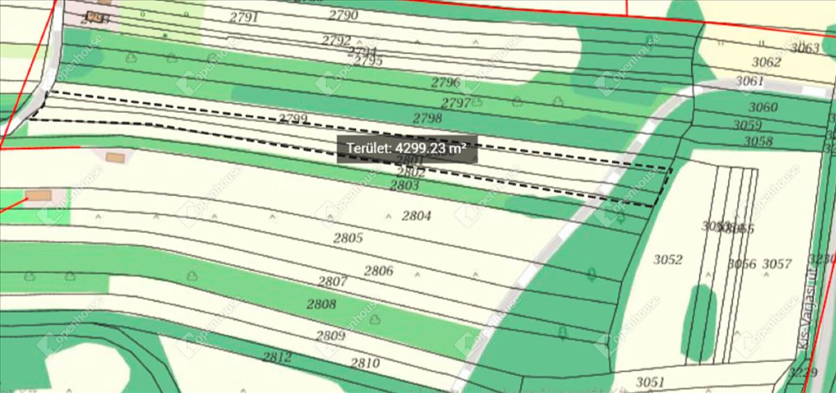 9189 m², enyhén lankás terület, valamint most a tulajdonos ajándékba ad még egy 4300 m2-es területet, ami kb 100 m-re van az ingatlantól.