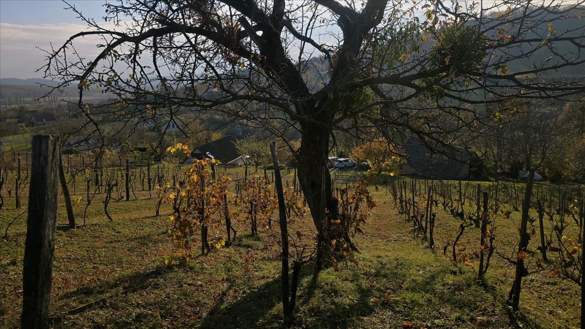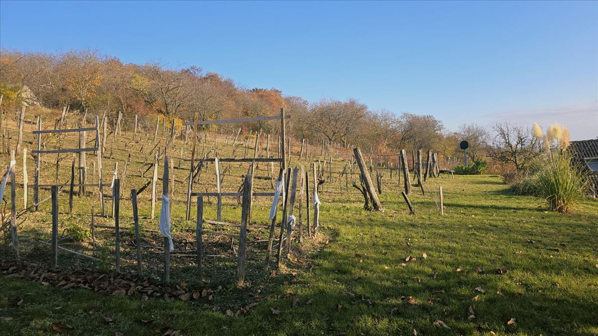 ~ Szőlő és néhány termő gyümölcsfa található rajta