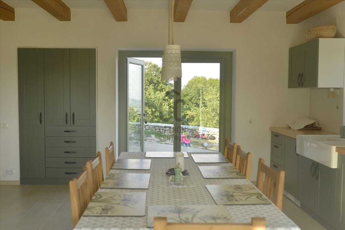 2. Egy 4. 413 m2-es, 12, 56 Aranykorona értékű, "rét és gazdasági épület, valamint szőlő ás gyümölcsös" besorolású zártkerti területből, ahol egy kétszintes, összesen 70 m2 + 94 m2 (! ) Terasszal rendelkező vendégház áll. a földszinten most egy fedett teraszos, jól működő vendéglátó hely (pékműhely) és kültéri kemence, míg a tetőtérben szálláshely került kialakításra. a padlófűtésről vízteres kandallóban melegített víz gondoskodik.