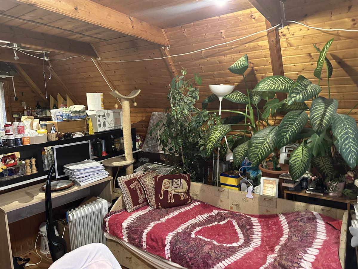 Pilisszántó elején, hegyoldalban 895 nm zártkertben, nagyon szép panorámával eladó egy 36 nm -es téliesített faház " gazdasági épület".