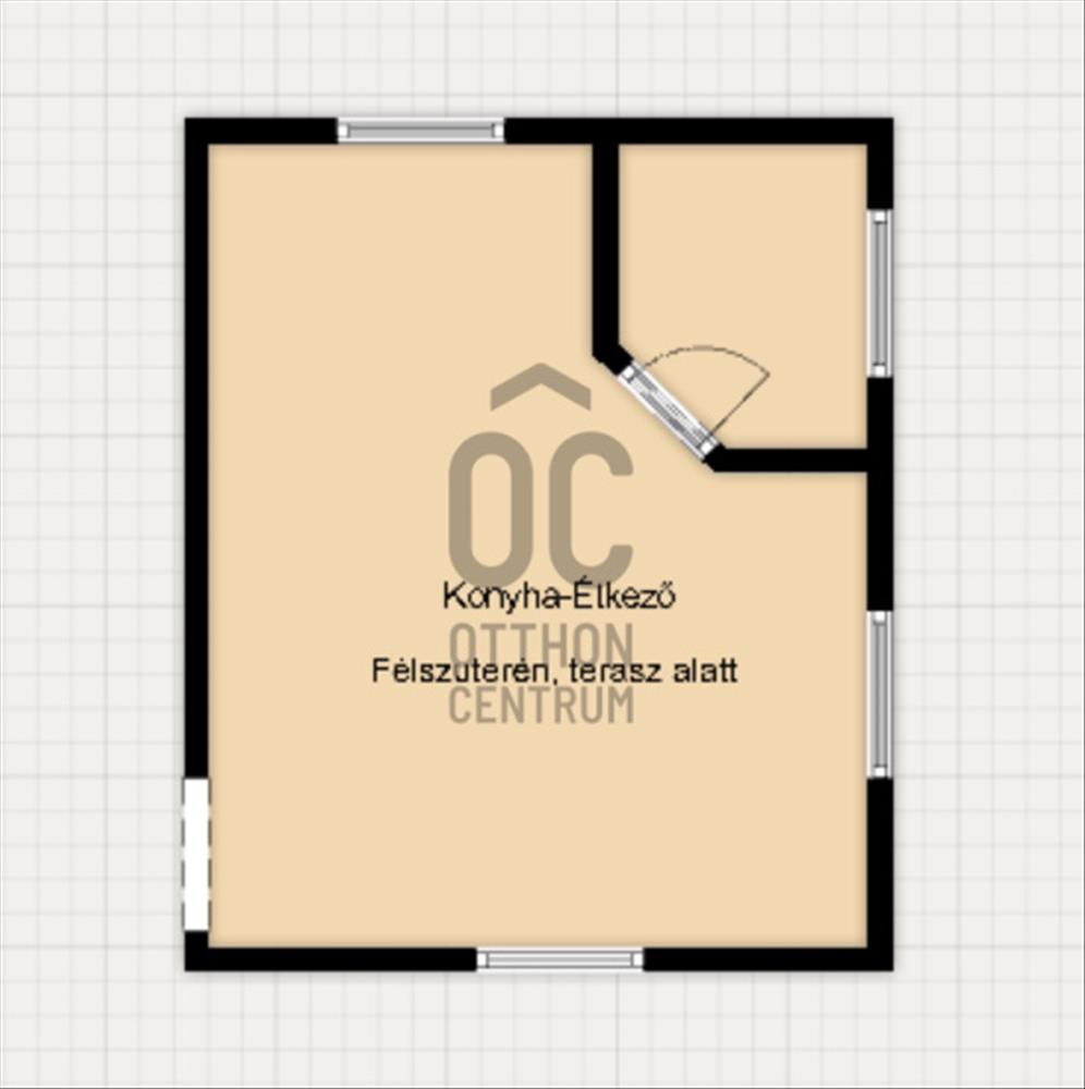 Félszuterén szint: a terasz alatt kialakított tágas konyha-étkező és egy praktikus kamra található.