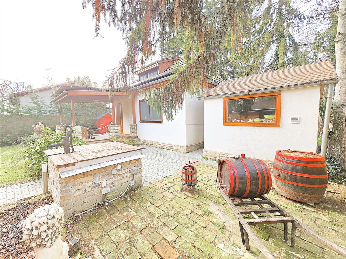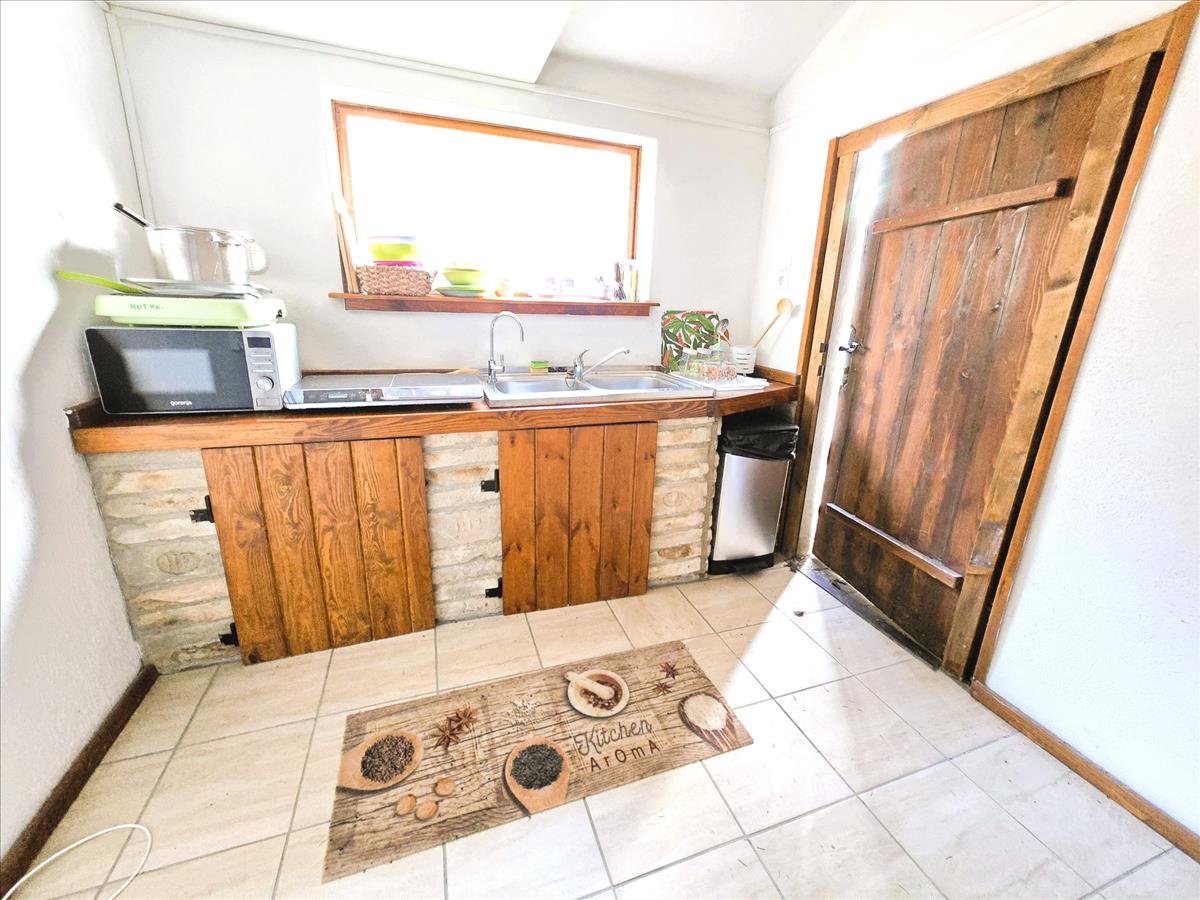 Az udvaron a ház mellett közvetlenül található a nyári konyha, mely falazata könnyűszerkezetes hőszigetelt épület, alapterülete : 10 m2, valamint egy beton alapra épült faház, ami vendégek elszállásolására ideális, alapterülete 12 m2, valamint egy szerszámtároló.