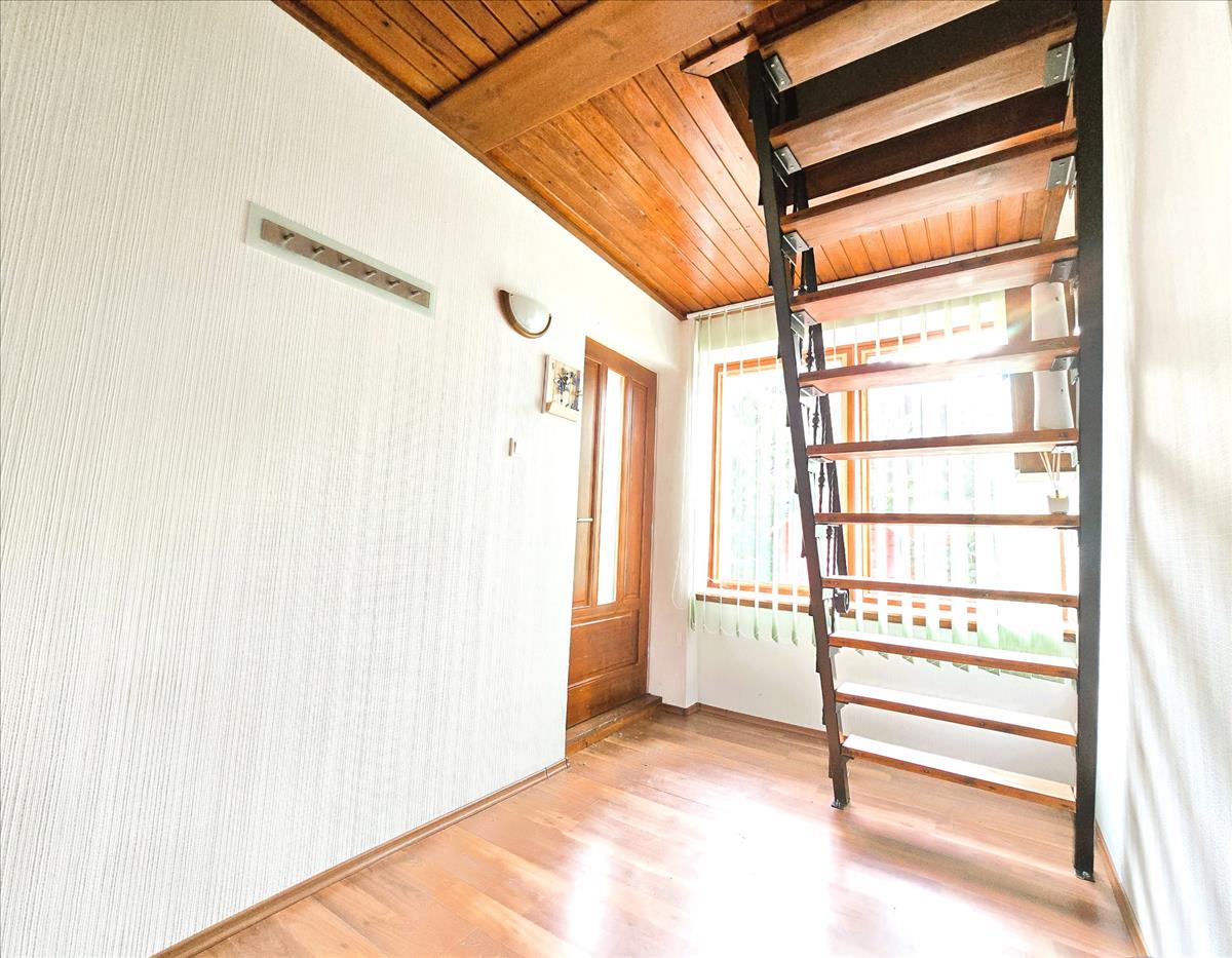 A tetőtér beépített, ahová egy stabil szerketetű fémvázas lépcső vezet fel. a tetőtér előtérből, illetve egy egylégterű hálóhelység áll. Az emeleten a belmagasság a legmagasabb ponton: 1, 8 m.