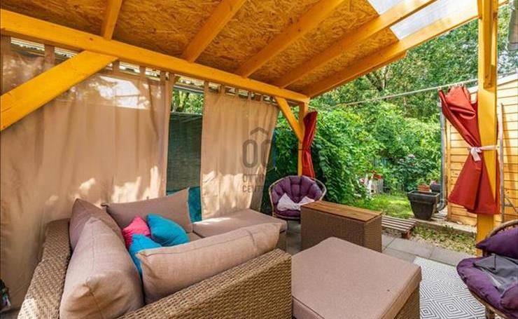A ház igazi éke a gondosan ápolt kert, ahol gyümölcsfák és színpompás virágok teremtik meg a meghitt, nyugalmas légkört. a telek mérete ideális a pihenéshez, ugyanakkor könnyen karbantartható.