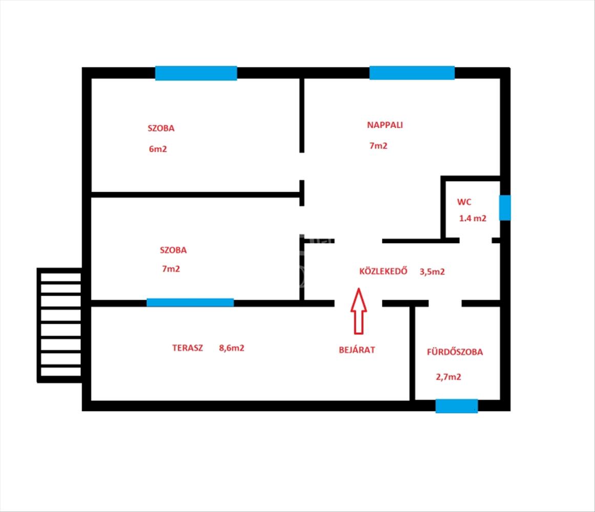 Cserélt ablakokkal, szúnyoghálóval, redőnnyel