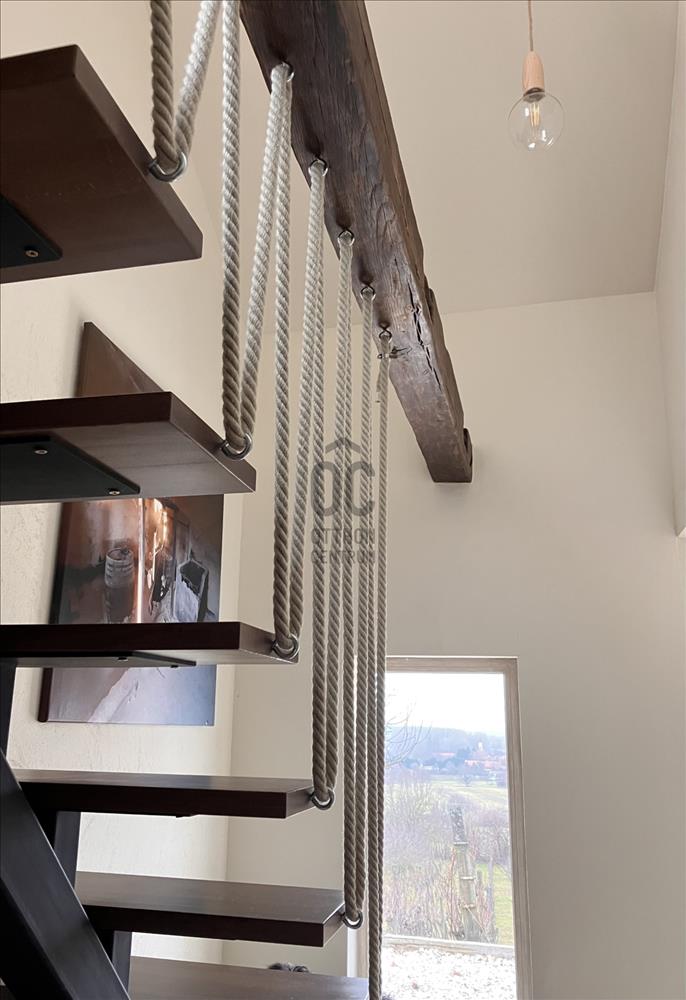 Az alsó szinten amerikai konyhás nappali-étkező és vendég wc van, továbbá a tetőtéri feljáró.