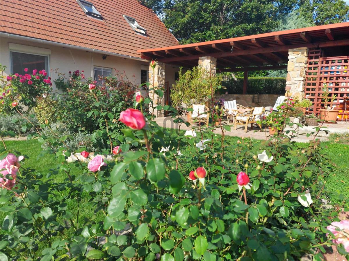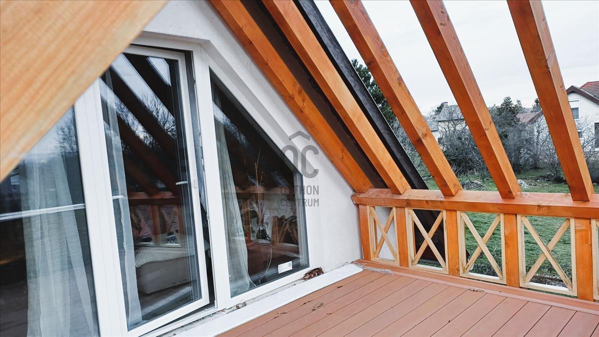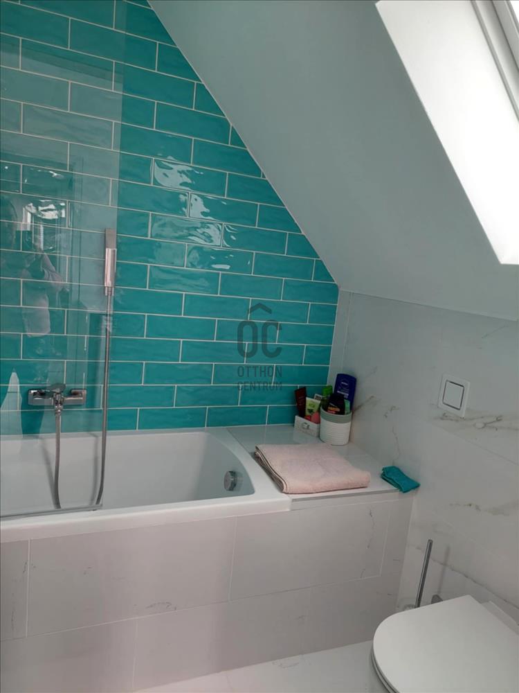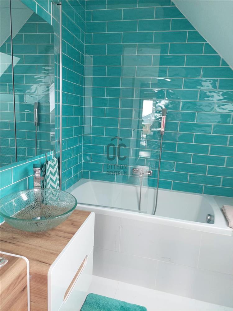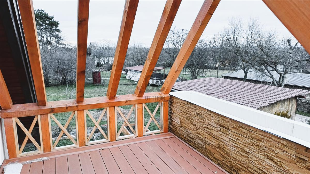 A múlt évben megújult mindhárom fürdőszoba, a tetőtéri halószoba elé egy 11 m2-es terasz készült. Alatta félkör alakú, nagyrészt fedett teraszt alakítottak ki. a ház mellett hangulatos, fa szerkezetű fedett nyári pihenő van, mellette apácarácsos fatároló. a kert alján 3 autó számára alkalmas kocsibeálló létesült.
