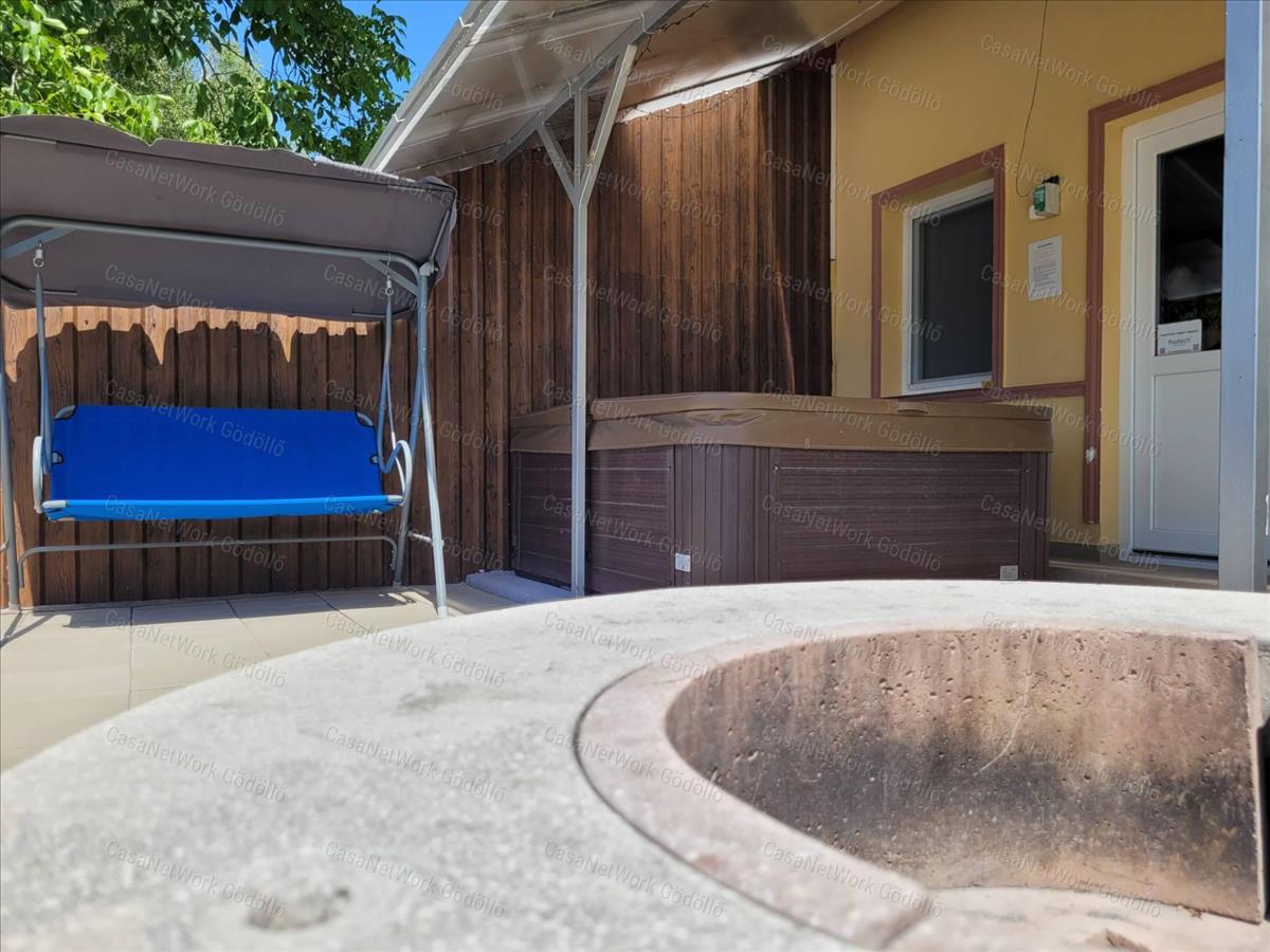 A hátsó, privát teraszon egy jakuzzis wellness részleg, valamint tűzrakóhely, elöl