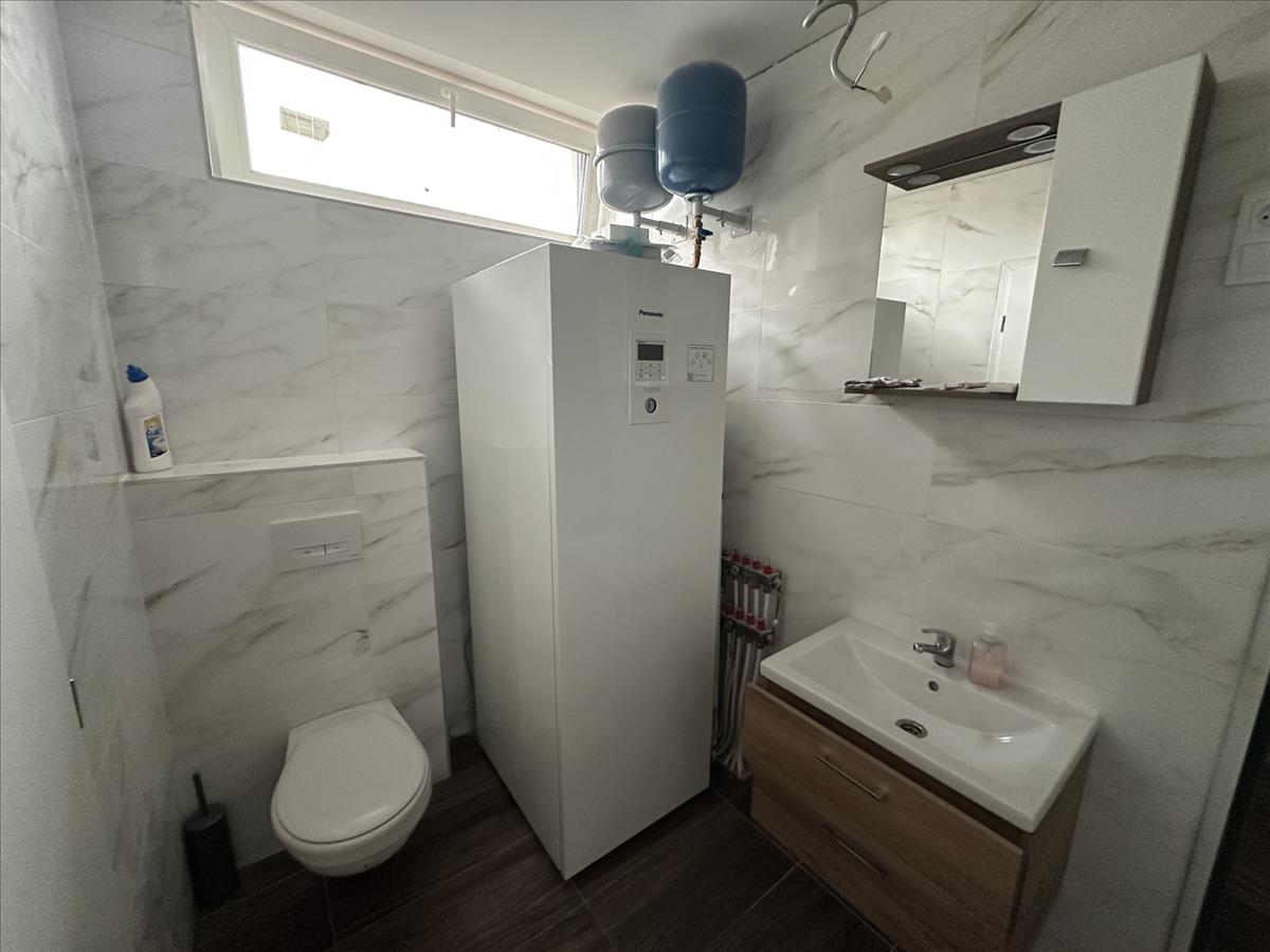 A komfortos hőérzetről egy 9 kW-os Panasonic hőszivattyú gondoskodik, padlófűtéses hőleadással, így az ingatlan télen is kiválóan használható.