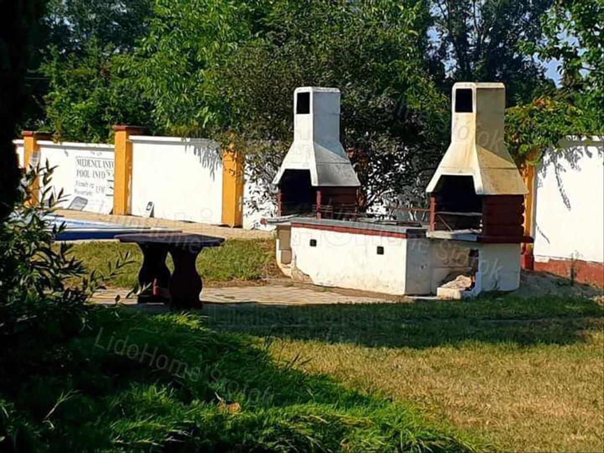 -Medence feszített víz tükrű és közös grill sütögető van az
