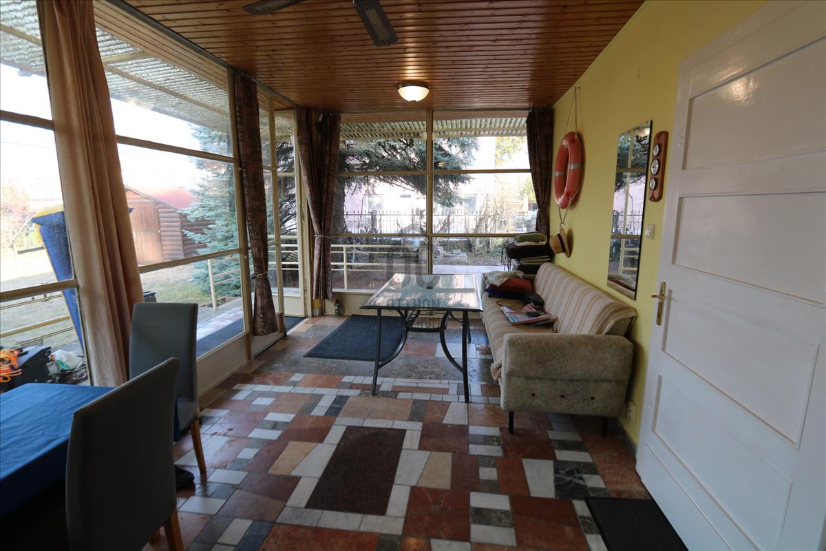 Eladásra kínálom Siófok város Széplak városrészén ezt a remek adottságú telket, rajta egy kis nyaralóval. Az ingatlan ritka adottsága, hogy az építmény a hátsó telekhatárra épült, ezért az utcafrontra egy újabb épület húzható, a hátsó igény szerint felújítható, vagy bontható. a telken egy apró faház is áll.Az épületbe egy minden oldalról üveges verandán lépünk be, jobbra egy szoba, balra egy konyha nyílik. a kis nyaralót U alakban terasz öleli körbe, a jobb oldalon egy külön bejáratú félszoba, a bal oldalon az ugyancsak külön bejáratú fürdőszoba található. a hátsó telekhatár felől egy tároló található.