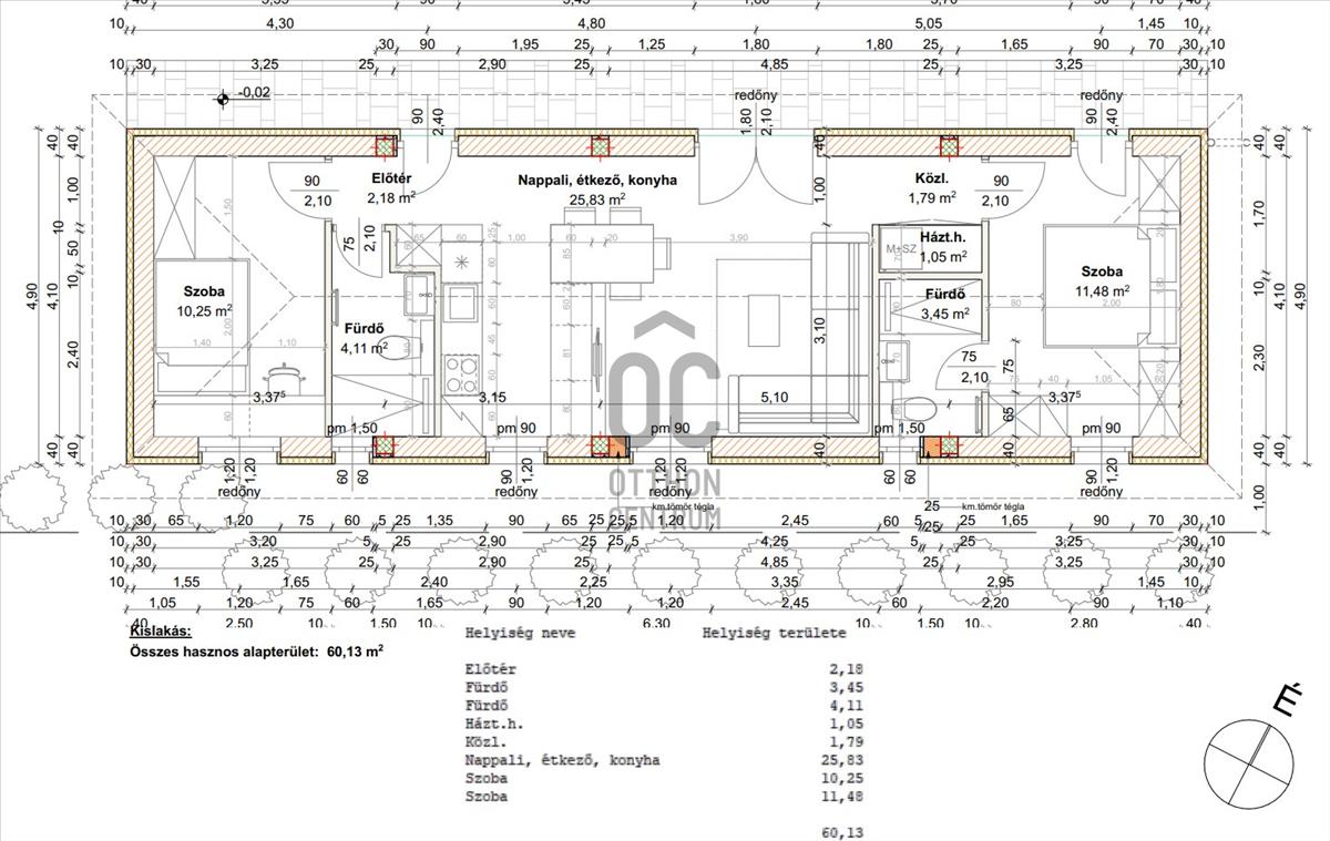 Két hálószoba (10, 25 m² és 11, 48 m²) van, mindkettő berendezhető méretű, nem “papírra rajzolt”.