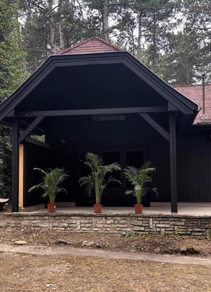 Bár könnyűszerkezetes (fa) épületnek látszik a nyaraló a fotón,