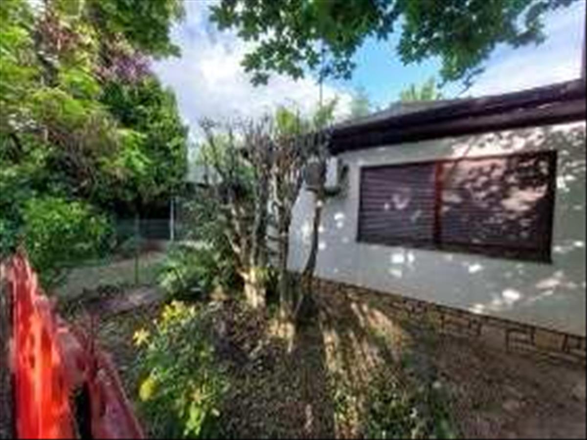 -Téglából épült, fa kerti tároló, kertben több termő és árnyékot adó gyümölcsfa van, dió, cseresznye.