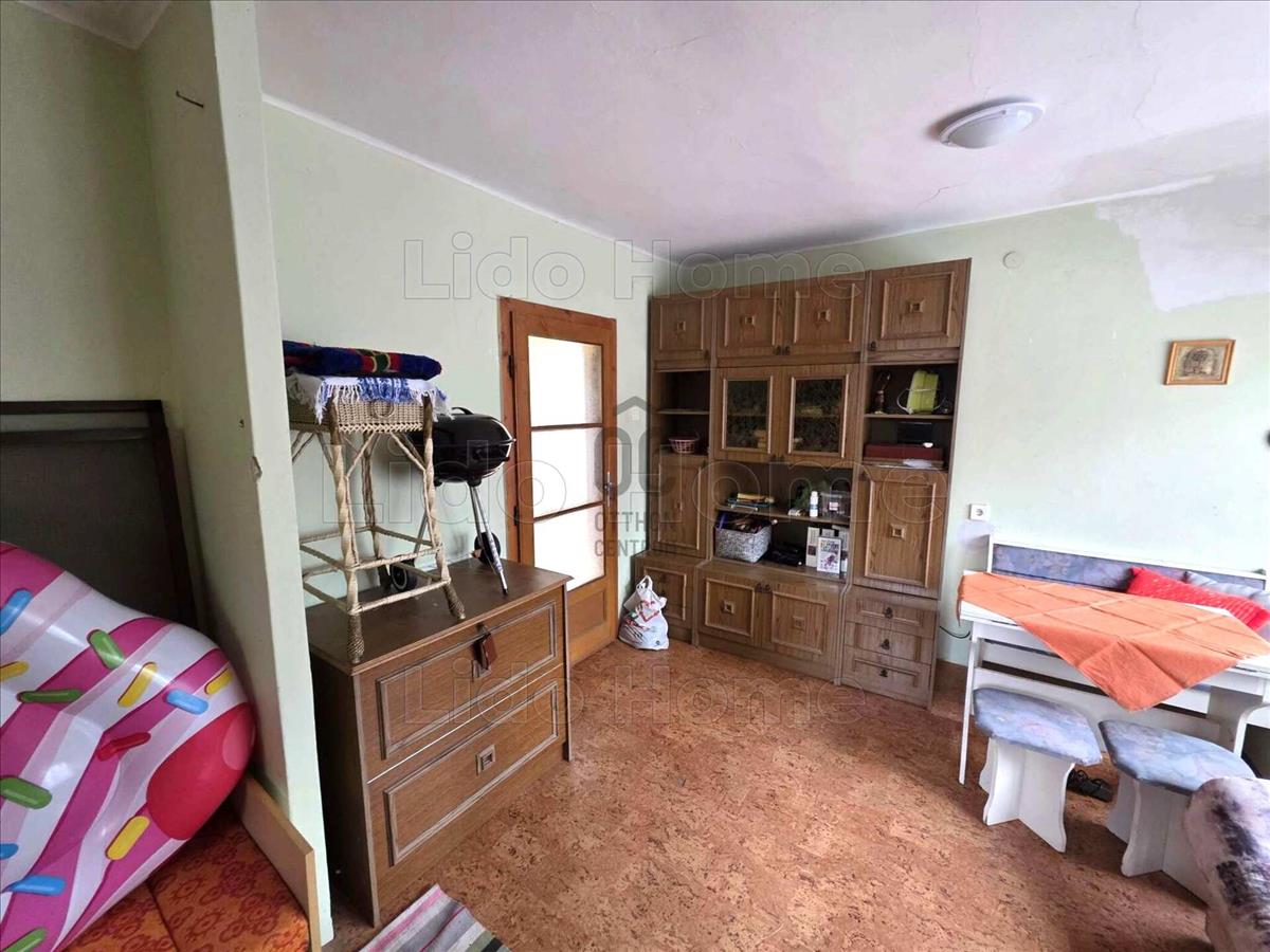 -A ház 36 m2, telek 297 m2, nappali hálószoba, fürdőszoba, konyha.