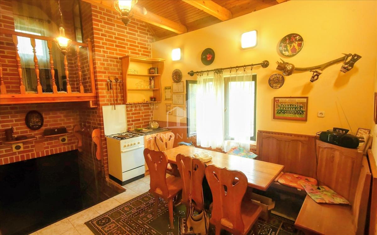 Az 1990-ben épült tégla építésű kis ház 40 m² hasznos alapterülettel, konyhával, étkezővel és egy galériás hálószobával rendelkezik, ahol a fagerendák alatt nyugodtan lehet éjszakázni.
