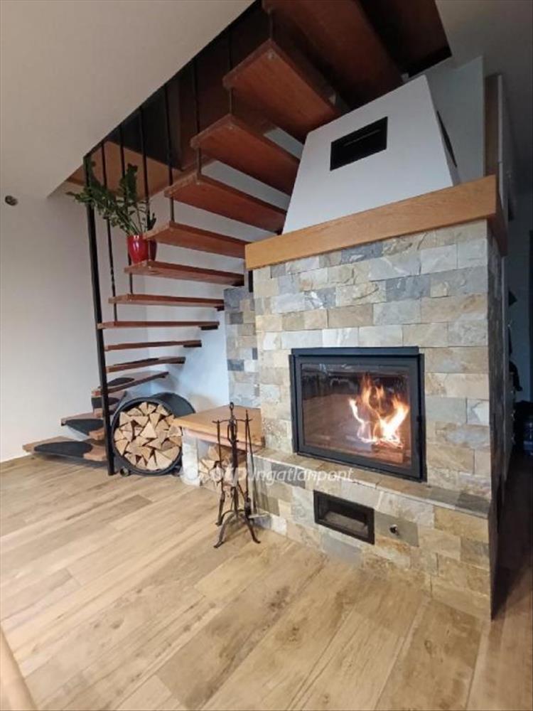 A fűtésről egy Edilkamin márkájú, nyers, görög márvány burkolatú, vízteres fatüzelésű kandalló gondoskodik, ami egy nagy puffertartályon keresztül minden helyiség radiátorára rákötésre került.