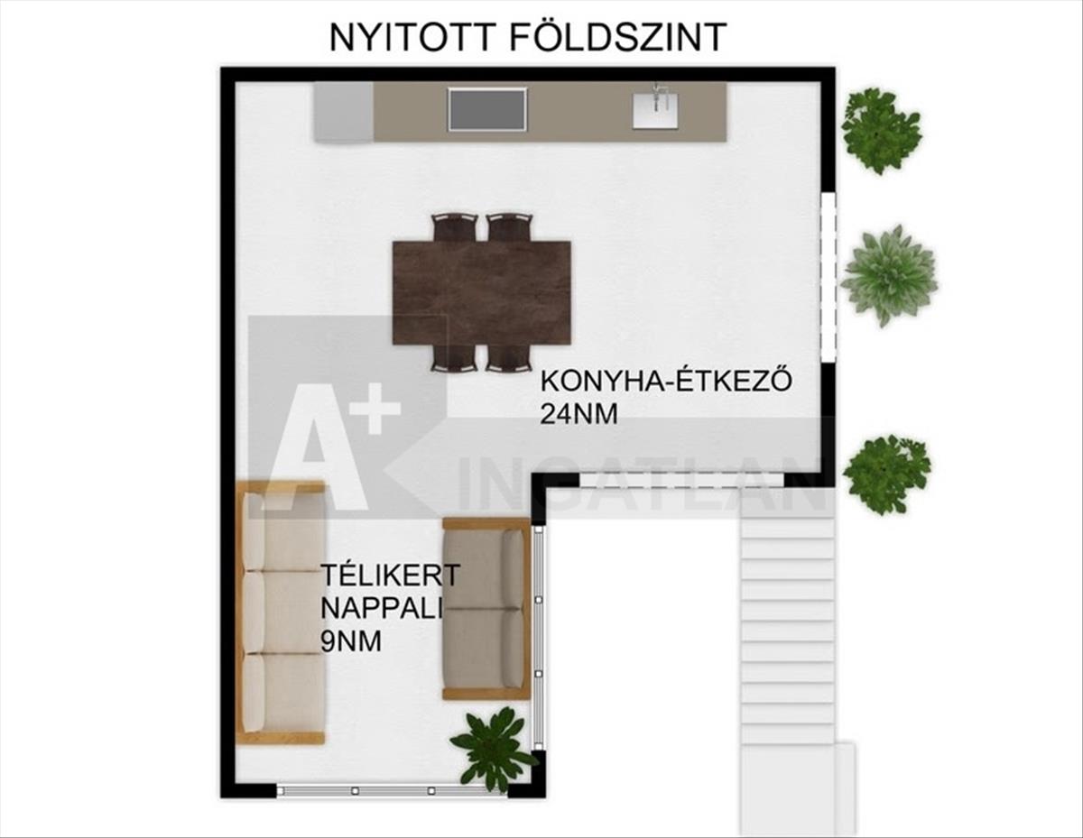 A telek maga 130nm, dísznövényekkel, birsalmafával, fügebokorral, olajfákkal stb. Beültetett, füvesített. Folyamatosan gondozott oázis.